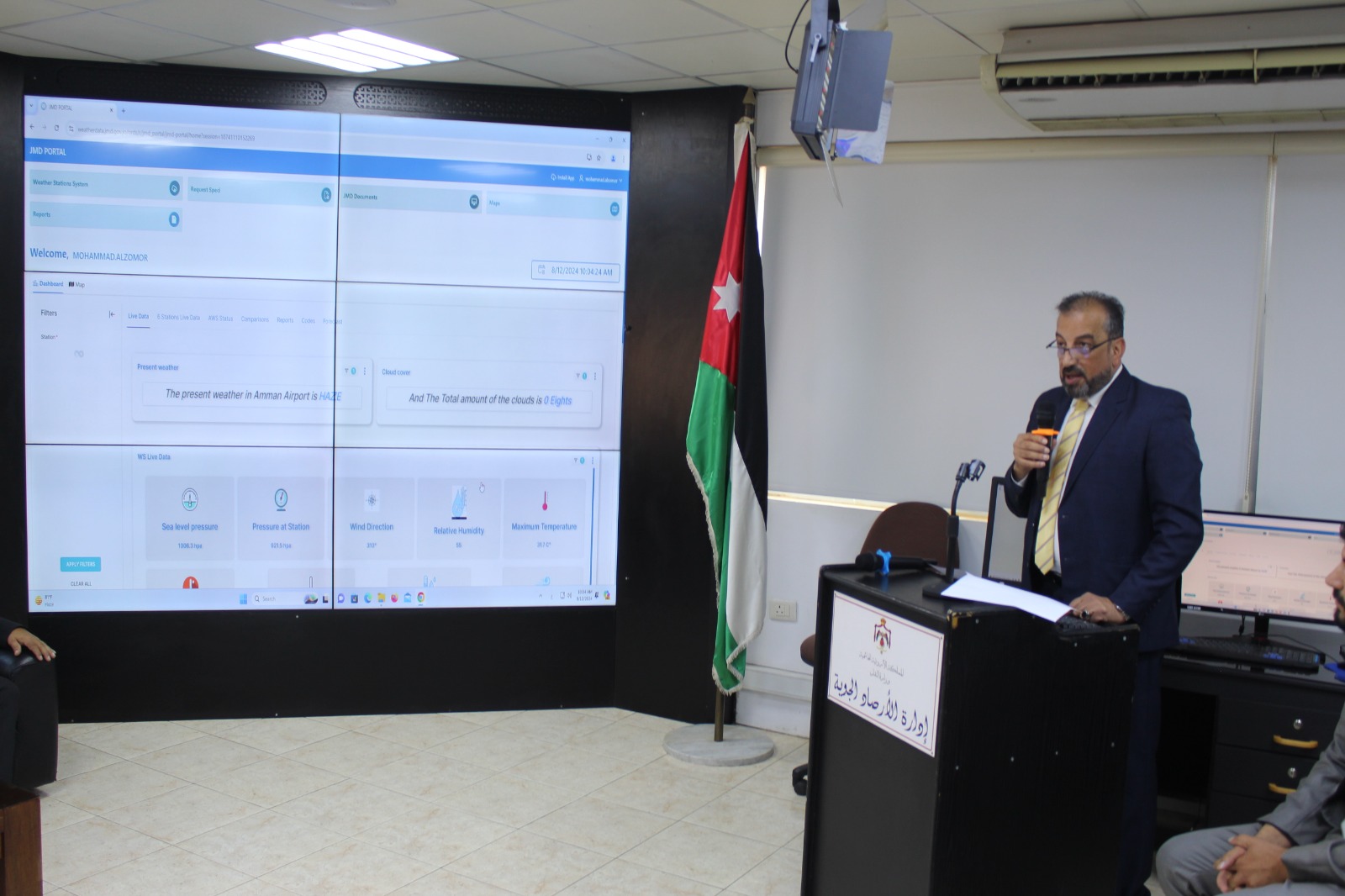 من جهته، قدم السجدي مدير الشركة المنفذة للمشروع شرحا حول عمل النظام والجهد الذي تم بذله من قبل الشركة بالتعاون مع ادارة الارصاد الجوية لانجاح النظام.