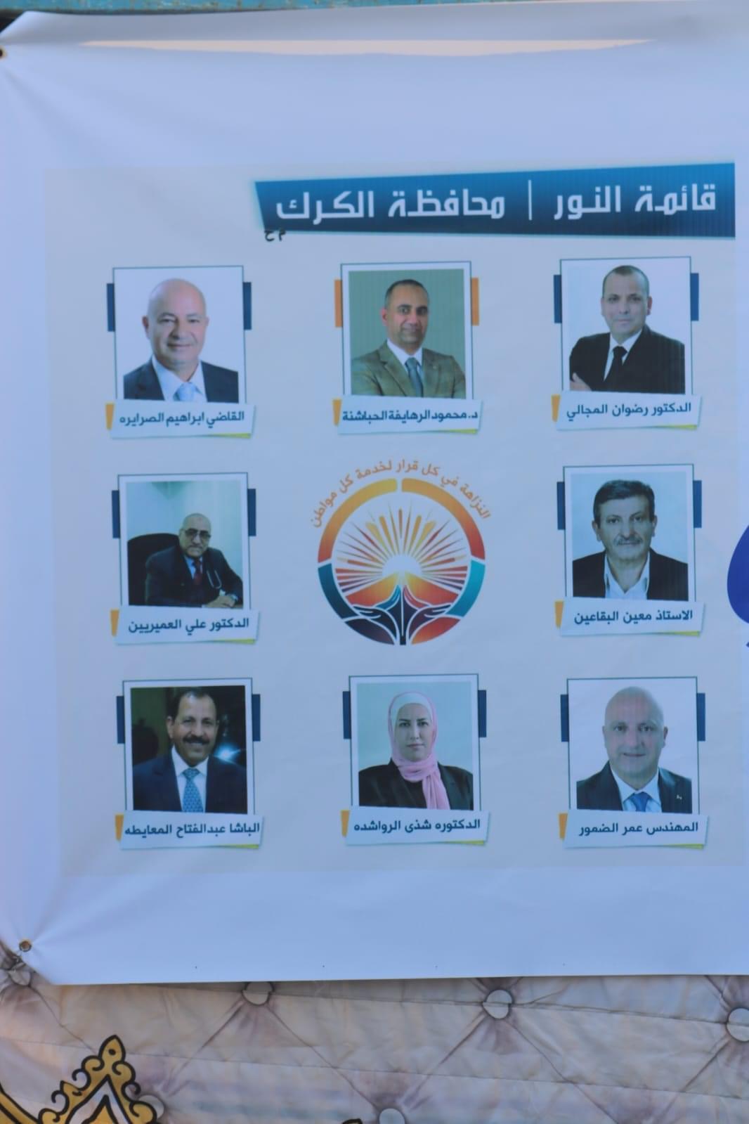 يذكر ان الدكتور المجالي مرشح عن قائمة النور والتي تحظى بشعبية واسعة بين الاوساط الكركية ومن المتوقع ان تتجاوز العتبة وتنافس بقوة لحصد مقاعد من دائرة الكرك