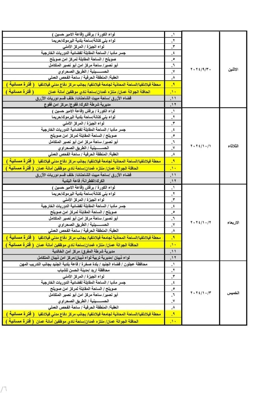 مواعيد العمل بجولات الترخيص المتنقل خلال شهر أيلول - قائمة