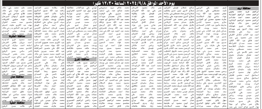 دعت دائرة قاضي القضاة اليوم الثلاثاء وبالتنسيق مع إدارة تقييم الكفايات الوظيفية/هيئة الخدمة والإدارة العامة مرشحين لحضور الامتحان التنافسي الإلكتروني حسب الأوقات والأيام المحددة أدناه. وتاليا الأسماء: