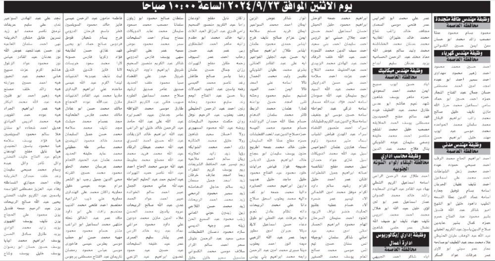 دعت وزارة التربية والتعليم، يوم الأربعاء، بالتنسيق مع إدارة تقييم الكفايات الوظيفية في هيئة الخدمة والإدارة العامة، مجموعة من المرشحين لحضور الامتحان التنافسي.