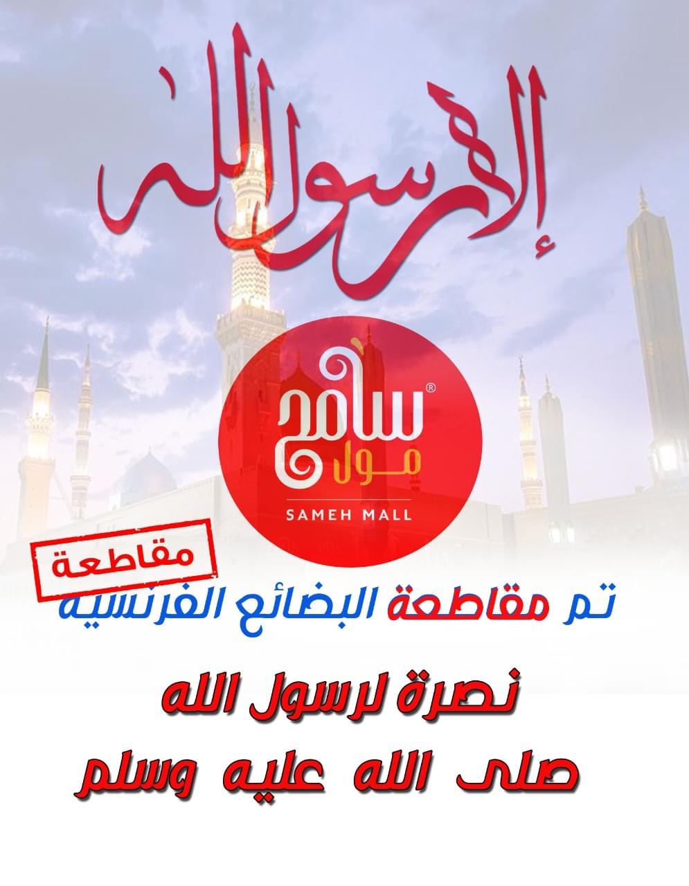 قررت ادارة سامح مول مقاطعة المنتجات والبضائع فرنسية المنشأ نصرة للرسول صلى الله عليه وسلم بعد الاساءة المتعمدة والتي مست كل انسان عربي بعض النظر عن ديانته