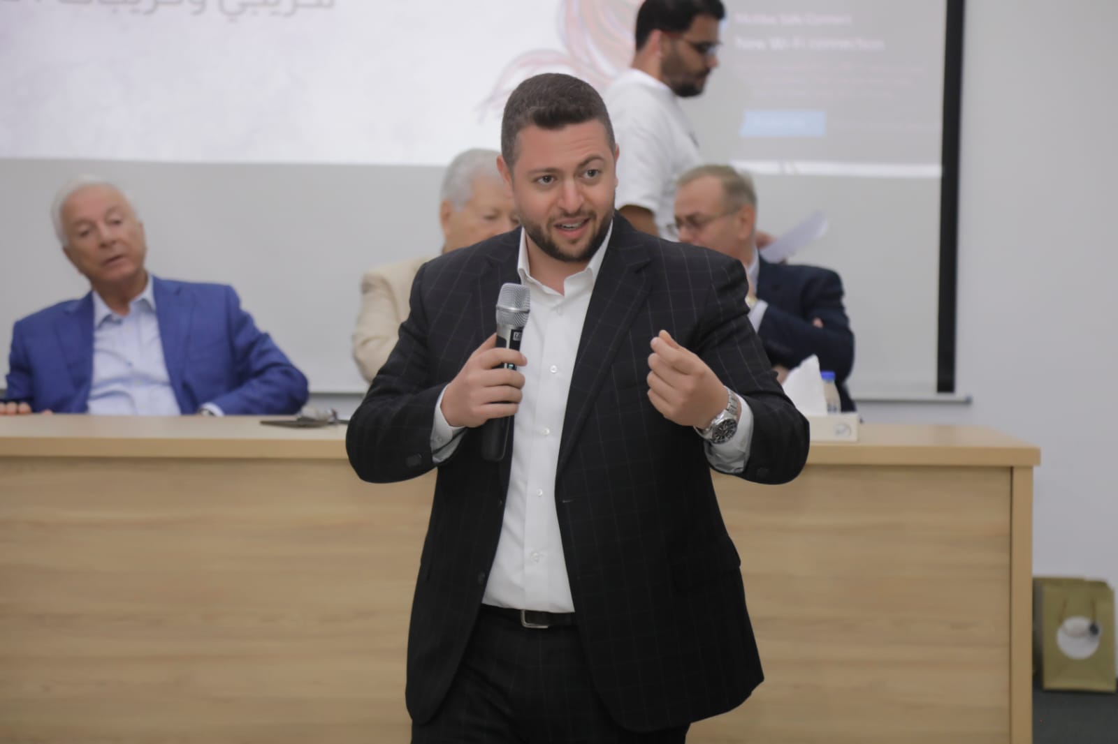 .بحضور العين الدكتور سمير نعيم عبد الهادي والدكتور عمر نعيم بعد الهآدي والمحامي معتز سهيل عبد الهادي رئيس الهيئة الاداريه لديوان العائله
