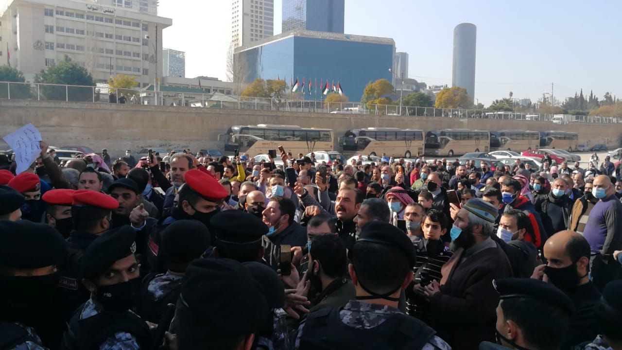 وتحوّل التجمّع إلى فعالية غاضبة ومسيرة انطلقت من البوابة الخارجية لمجلس الأعيان إلى الشارع الواصل بين مجلس النواب ومبنى أمانة عمان.