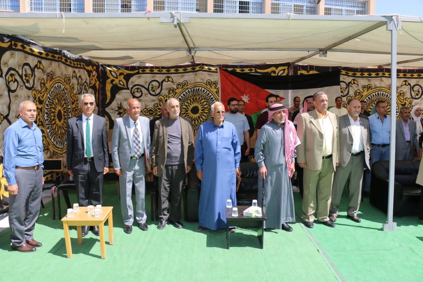بدأ الاحتفال بالسلام الملكي تلاه آيات عطرة من الذكر الحكيم وبعدها كلمة ترحيبية من مدير المدرسة السيد سلمان النوافلة رحب بها بالحضور والزملاء المتقاعدين الذين غادروا سلك التعليم، مؤكداً على البصمات الكبيرة لهؤلاء القادة التربويين على المدرسة والمجتمع بشكل عام، والتي تعجز الكلمات أمامهم من قبل تلاميذهم وجميع الأهالي احتراما وتكريما على ما قدموه لخدمة العلم فلكل واحد منهم بصمته الخاصة التي تركها في نفوس وعقول وحياة طلبة المدرسة على مدى سنوات من العطاء والبناء.