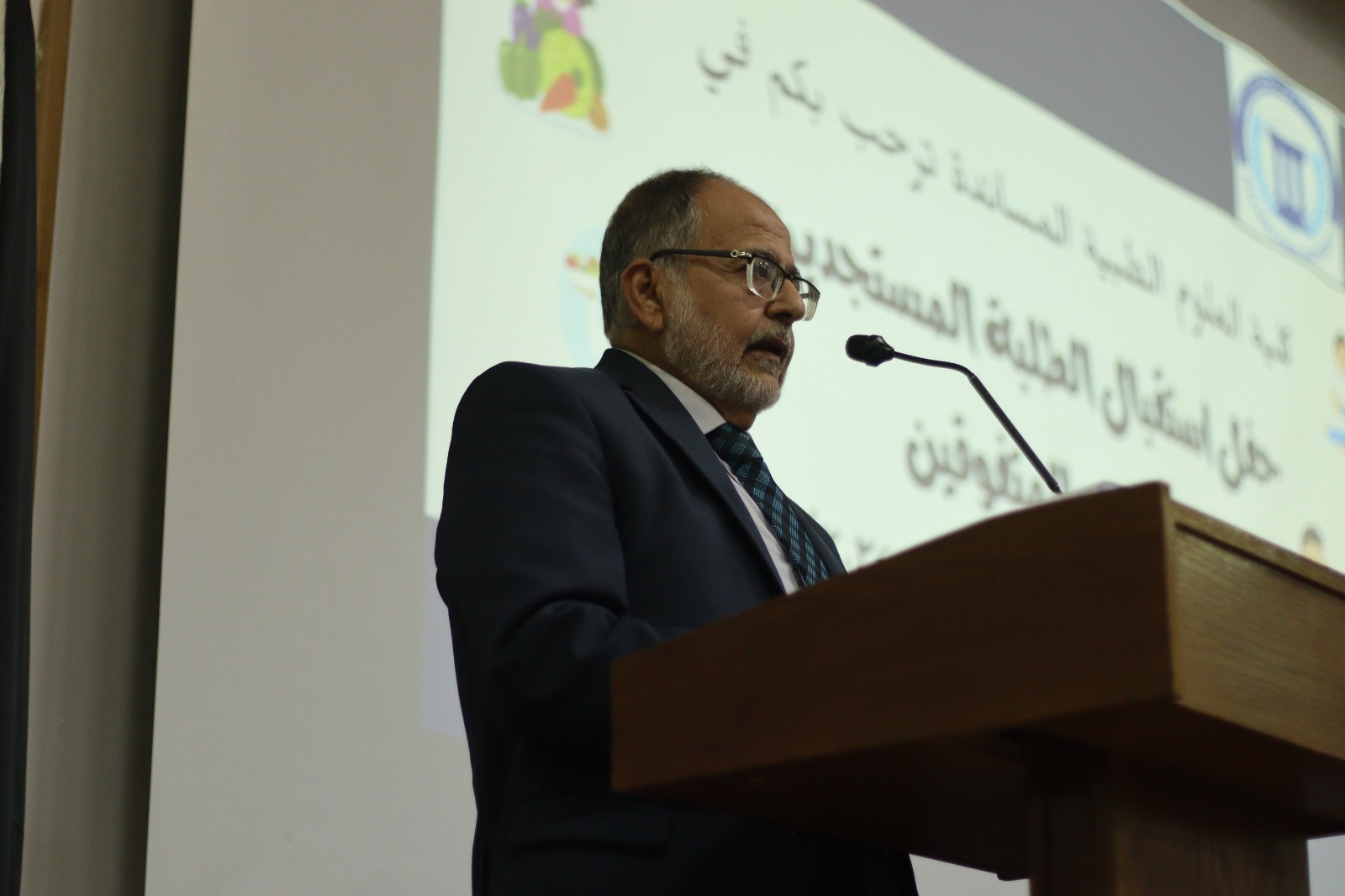 واستُهل اللقاء بتلاوة عطرة من القرآن الكريم، أعقبها كلمة ترحيبية ألقاها عميد الكلية، رحّب فيها بالطلبة الجدد، مقدمًا لهم مجموعة من النصائح والإرشادات في مسيرتهم الجامعية.