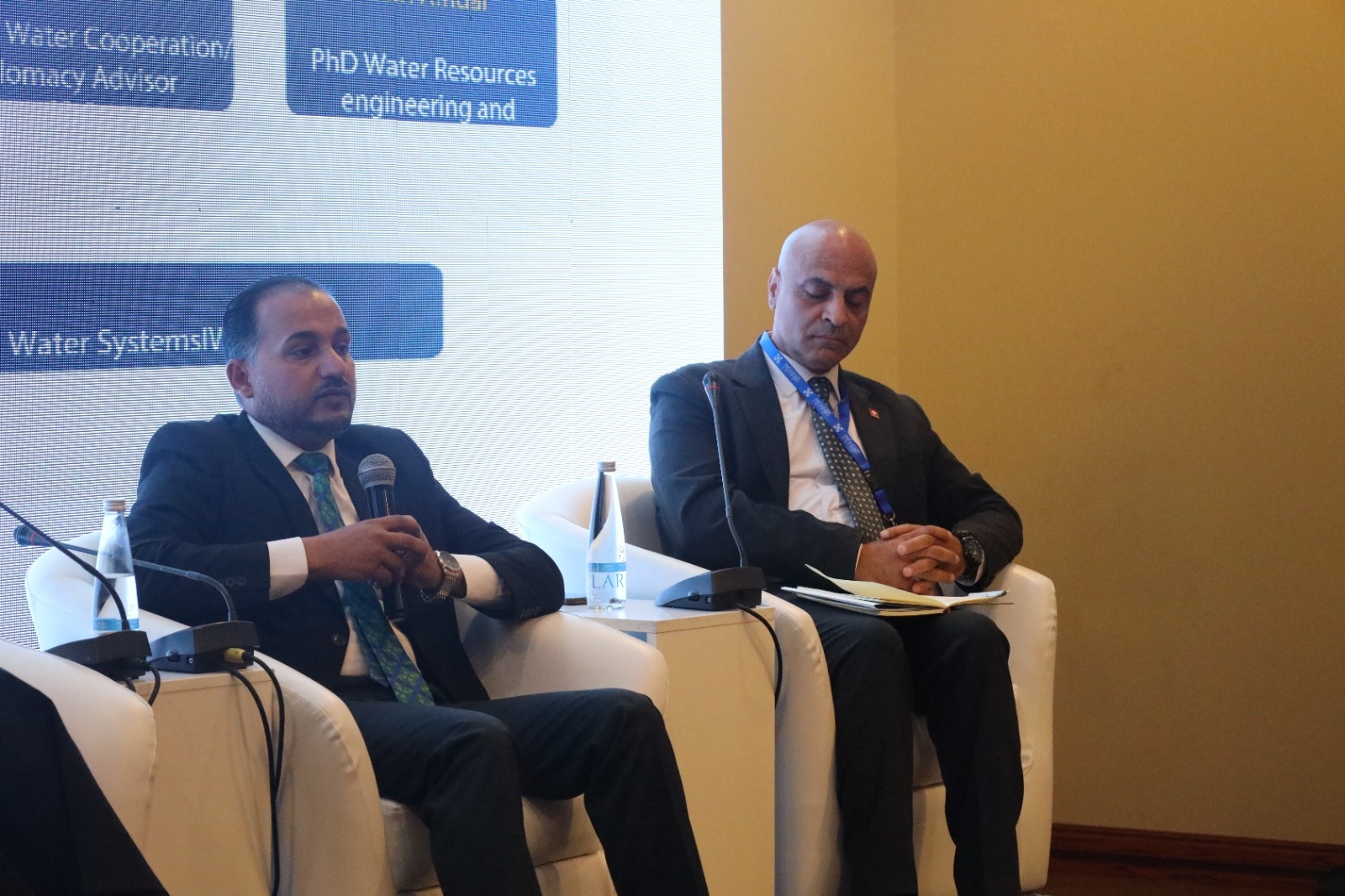 دعا أمين عام سلطة وادي الاردن المهندس هشام الحيصة خلال مشاركته بأعمال الجلسة الحوارية التشاركية بعنوان السيناريوهات والمسارات للتعاون بين الدول في مجال المياه العابرة للحدود في حوض نهر اليرموك المنعقدة على هامش أعمال المؤتمر السابع لاسبوع المياه العربي في البحر الميت وبحضور اعضاء الوفد السوري ممثلا بمعاون وزير الطاقة السوري لشؤون المياه المهندس أسامة ابو زيد و المهندسة اماني العزام امين عام وزارة الطاقه والمهندس مفلح العلاويين خبير مياه حدودي وتعاون دولي ، الى أهمية تعزيز التعاون العربي المشترك لادارة مصادر المياه والمحافظة على الحقوق المائية لكل دولة ، وأضاف خلال الجلسة التي أدارتها د. مها الزعبي ود. نفن امدار من المعهد الدولي لإدارة المياه ( IWMI) وبحضور ممثلين عن الجهات الدولية المانحة GIZ وUSAID.