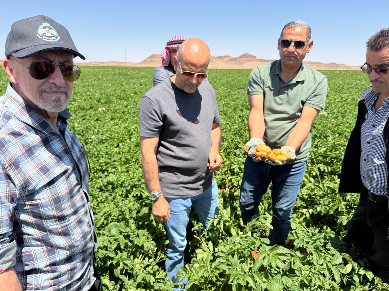 وأشاد الوزير خلال الجولة بالجهود المبذولة بالشراكة مع القطاع الزراعي الخاص الأردني في سبيل وتطوير الزراعة المستدامة الموفرة للمياه ، حيث شهد مع الجميع عن كثب نتائج هذه الزراعات المختلفة خاصة زراعة القمح المطورة التي تعد من الزراعات المتقدمة حيث تم استخدام المواد العضوية المخمرة التي تحسن من نوعية التربة بشكل كبير وواضح مع بذور القمح تم حصادها عدة مرات دون حراثة الأرض او نثر بذور أخرى وكذلك الغزارة في الإنتاج حيث ان كل حبة تنتج عدة سنابل غزيرة الإنتاج إضافة الى استهلاكها بما لايتجاوز 30% فقط من كمية مياه الري المستخدمة في المحاصيل العادية ، وكذلك في زراعة الخضروات والفواكة المختلفة والنتائج المبهرة المتحققة حيث أشاد الجميع خلال الزيارة على مختلف المزروعات والتقنيات الحديثة بالتجارب البحثية التي تم تطبيقها وتطويرها بخبرات اردنية محلية للاستفادة من كفاءة الري وتقيل كميات الري الى نسب كبيرة والحصول على انتاج عالي،.