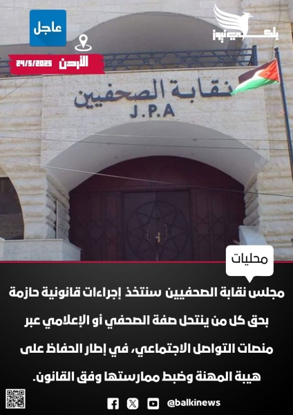 عمان، الأردن – أعلن مجلس نقابة الصحفيين الأردنيين عن نيته اتخاذ إجراءات قانونية حازمة بحق كل من ينتحل صفة الصحفي أو الإعلامي عبر منصات التواصل الاجتماعي. ويأتي هذا القرار في إطار جهود النقابة الرامية إلى الحفاظ على هيبة مهنة الصحافة والإعلام، وضبط ممارستها وفقًا للقوانين والأنظمة المعمول بها.
