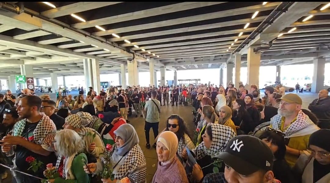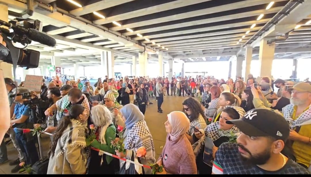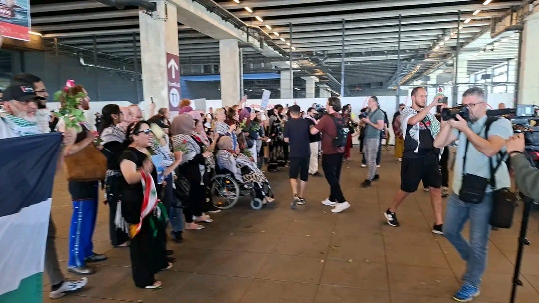 استقبال شعبي حاشد لأبطال سفينة "مادلين" في مطار برلين بعد محاولة كسر حصار غزة (صور)