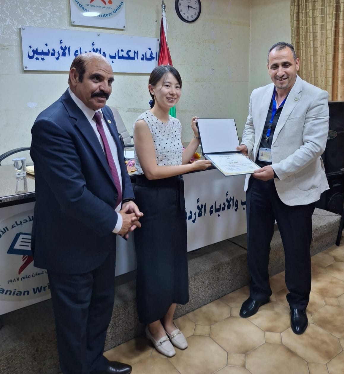 في نهاية الفعالية قدّم سعادة رئيس اتحاد الكُتّاب والأدباء الأردنيين/ الشاعر عليان العدوان الشهادات التكريمية للمشاركين، بمعية السيدة/ ميكا يامادا/ الملحق الثقافي في السفارة اليابانية.