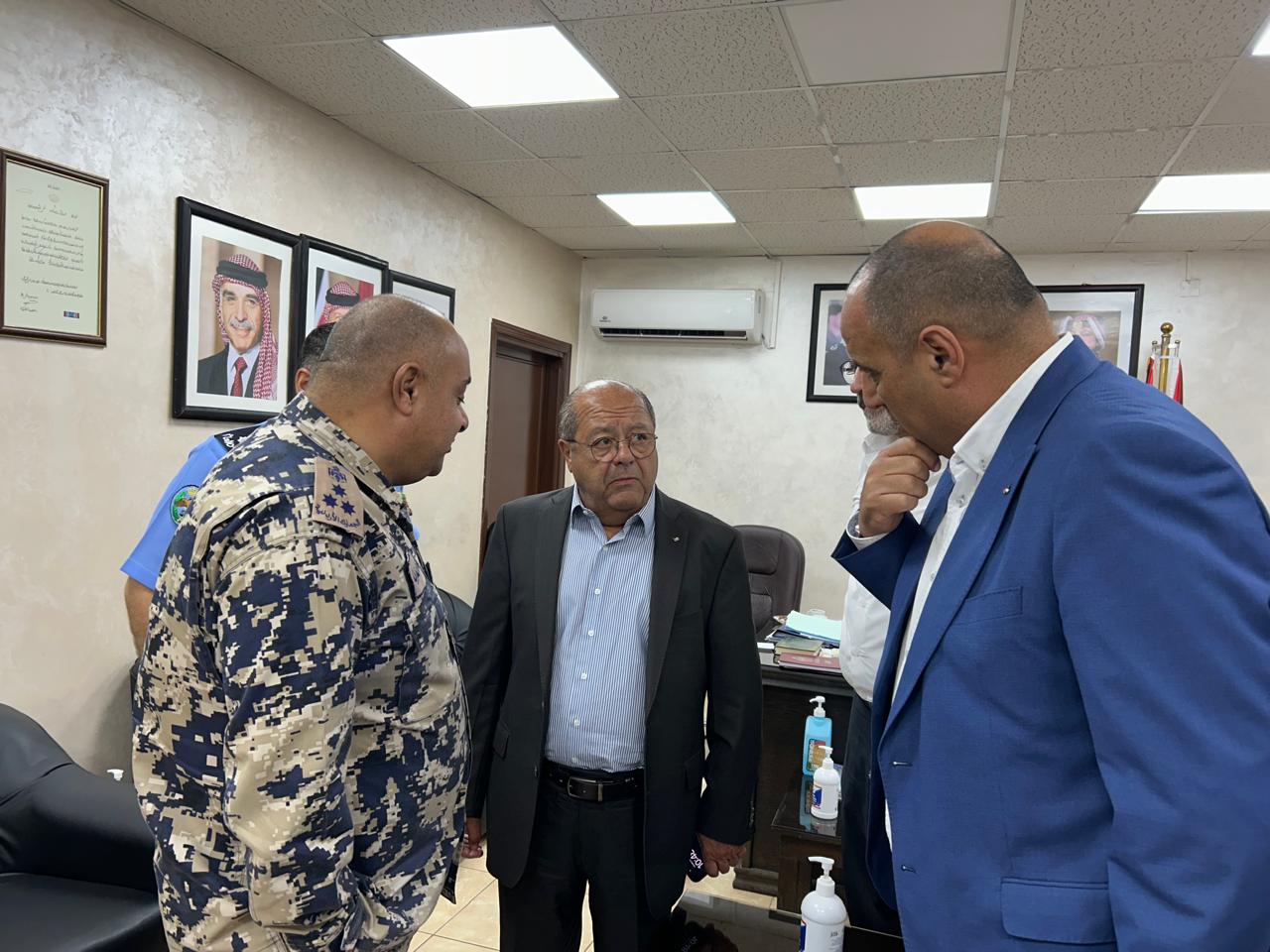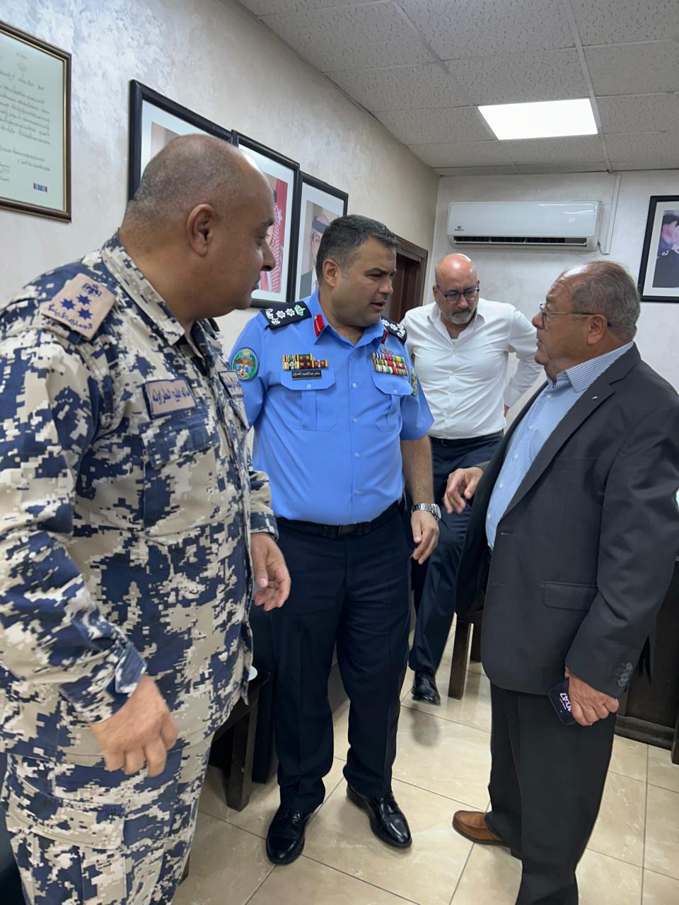 والتقى المجالي مسؤولي الأجهزة الأمنية والجمارك ومدير المركز الحدودي مشيراً إلى الجهود الكبيرة المبذولة من الأجهزة الأمنية ودائرة الجمارك في الارتقاء بأعمال وخدمات المركز الحدودي وتسهيل حركة السفر بالاتجاهين بافضل صوره.