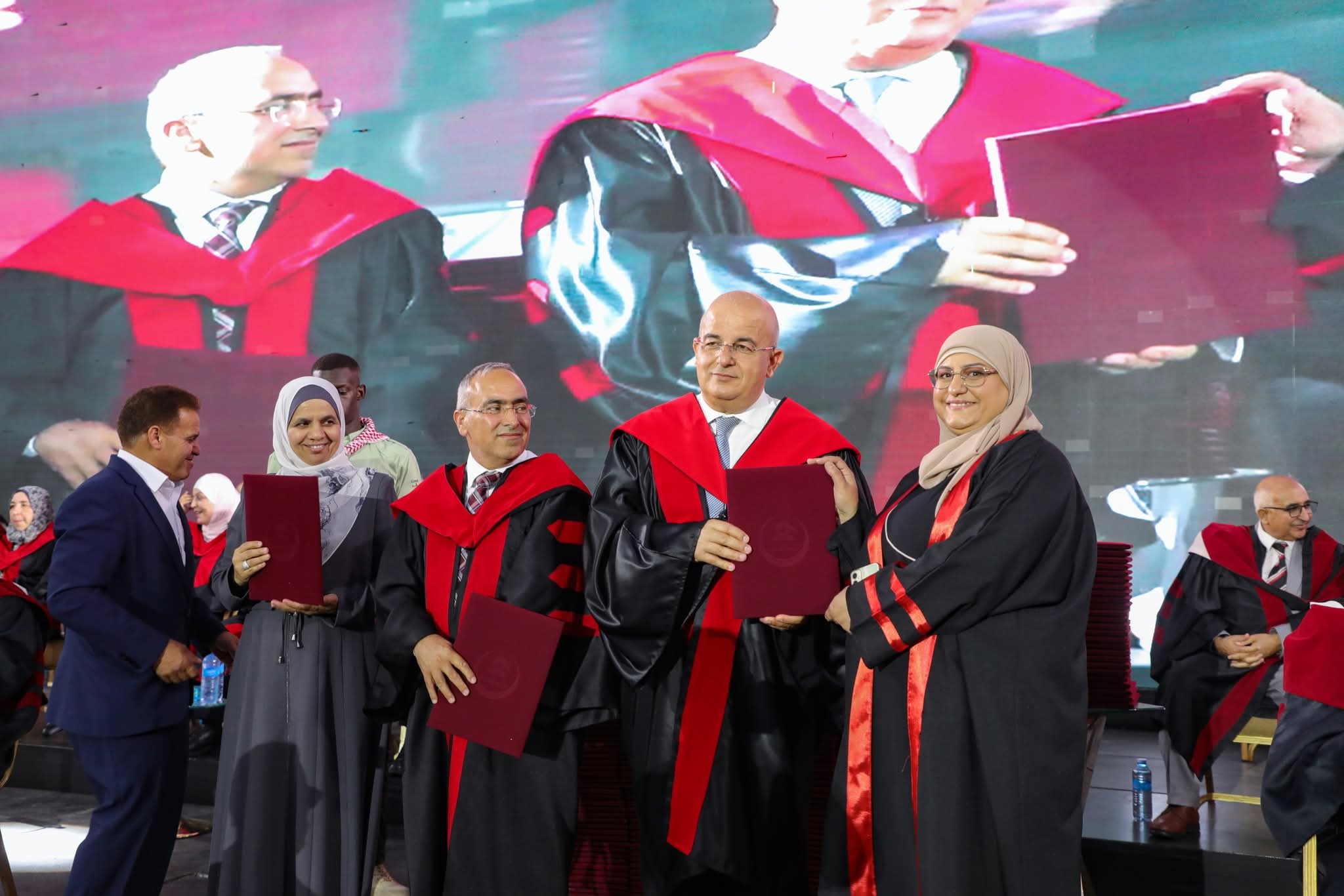 وثمن رئيس الجامعة دور أعضاء الهيئة التدريسية في مختلف كليات الجامعة، مؤكداً أن ما تحقق من إنجاز هو ثمرة جهودهم العلمية والتربوية، واصفا إياهم بالشعلة التي تُستنار بها العقول، وتبنى بها الأمم، وبالقدوة الملهمة، ومشيداً بجهودهم في غرس حب العلم والثقة في نفوس طلبتهم الذين يتوجون اليوم في ساحة الفخر.