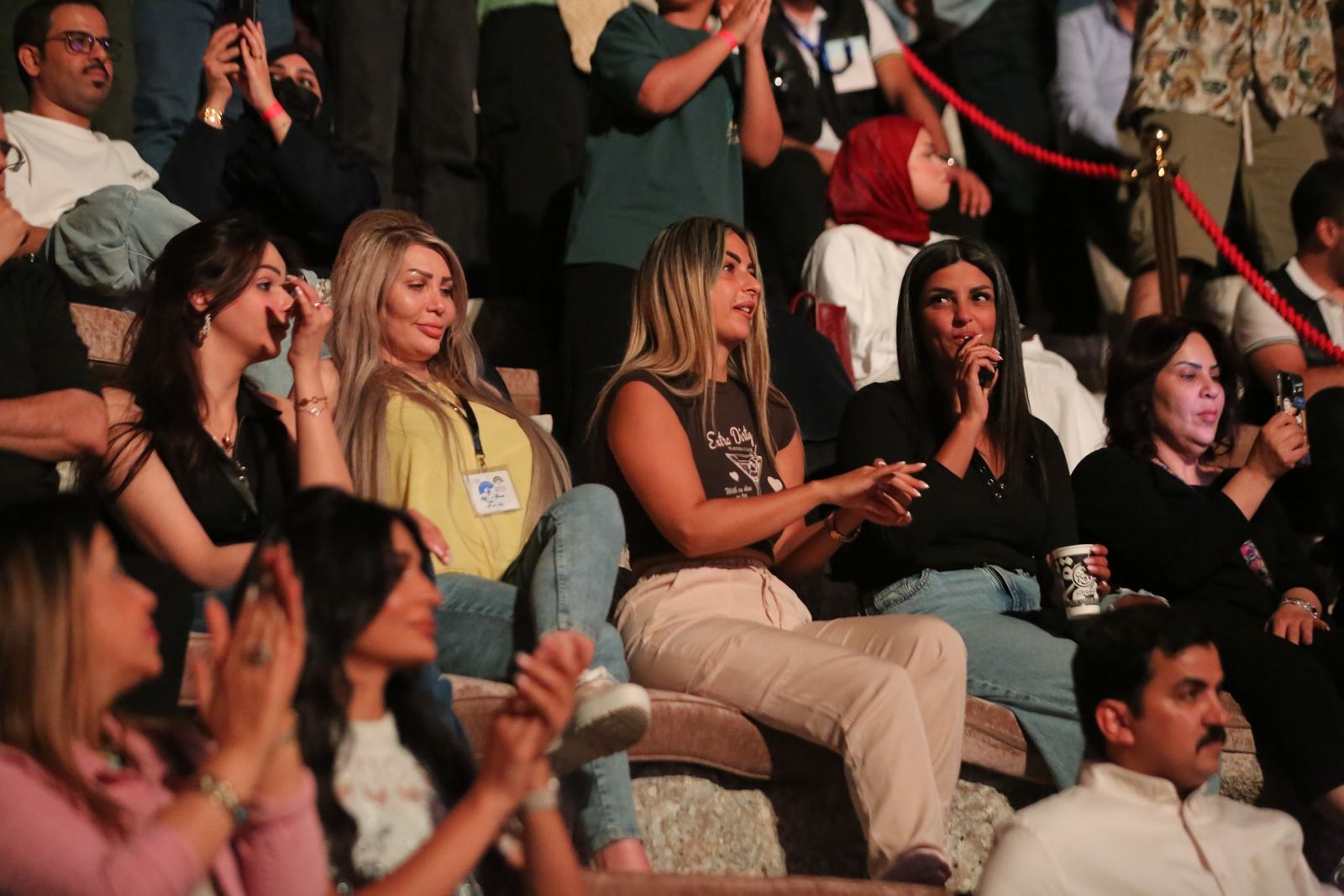 فقدمت أغنية لما قلبي يحب. لتتمايل العباءات السود في المدرجات مرددة مع نسمات الليل لحظات العشق.