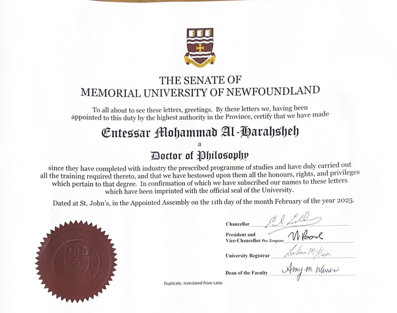 بـمـشـاعـر مليئـة بالفرحة والسرور يتقدم المهندس هاني محمد الحراحشه "أبو تاج" و العائلة من شقيقتهم الدكتوره إنتصار محمد الحراحشه بمناسبة حصولـها على درجة الدكتوراه من جامعة ميموريال -كندا في اللغة الإنجليزية بتخصص اللغات الأجنبية وبهذه المناسبة السعيدة، نسأل الله أن يبارك لكم