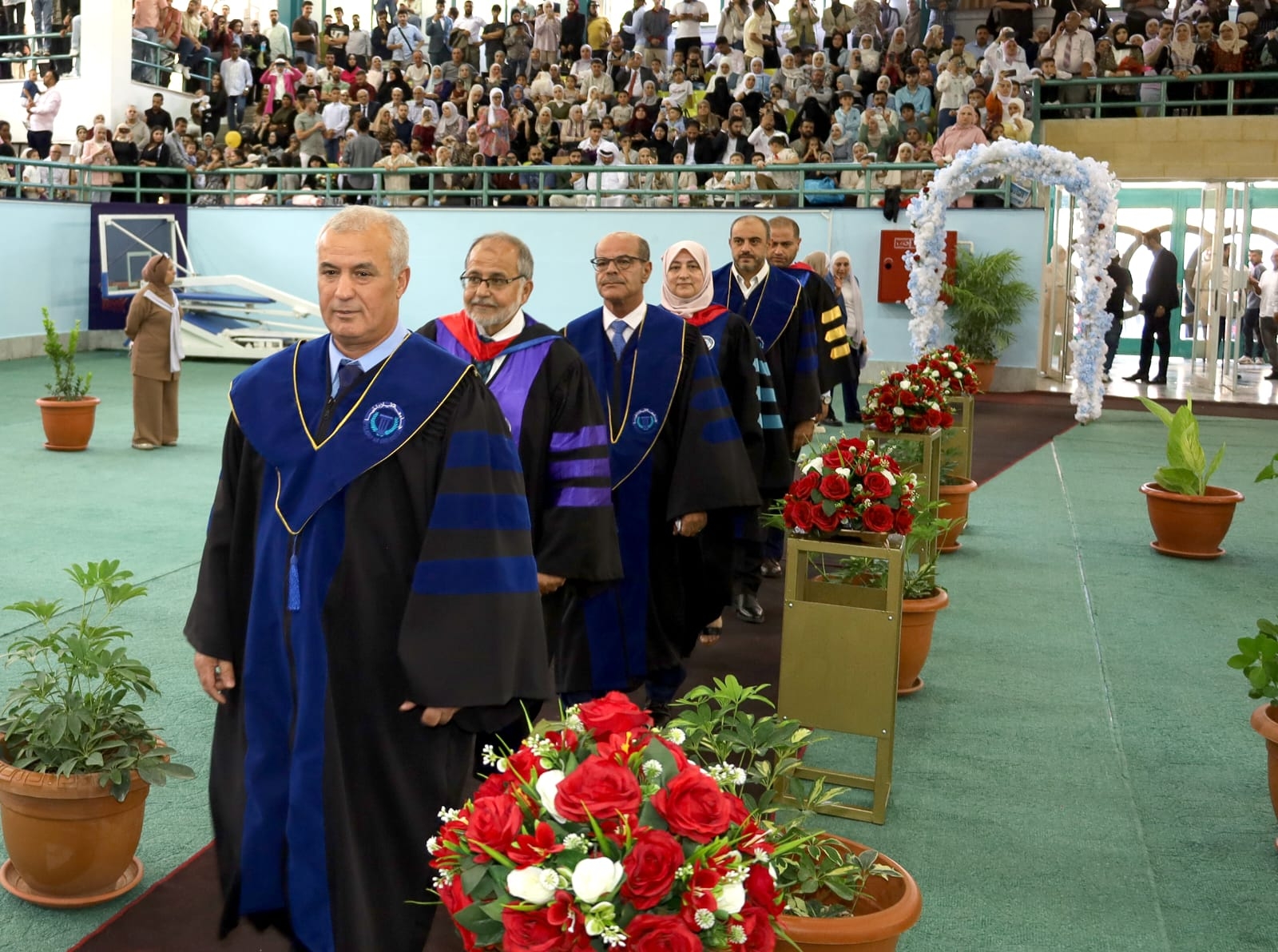 وهنّأ رئيس الجامعة الخريجين على ما حققوه من إنجاز جاء نتيجة جهدهم وإصرارهم، مؤكدًا أنهم اليوم يقفون على أعتاب مرحلة جديدة من حياتهم، يحملون معها الأمل والعزيمة لتحقيق النجاح في ميادين العمل، بروح من الصدق والإخلاص، وسعي دؤوب نحو تحقيق أهدافهم النبيلة، داعيًا إياهم إلى أن يكونوا خير ممثلين لجامعتهم في مواقعهم المستقبلية.