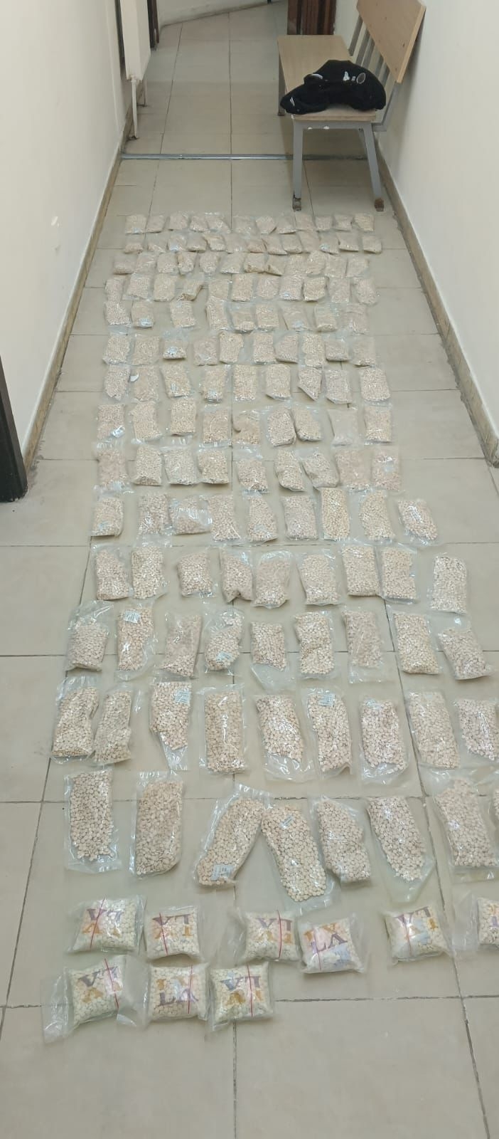 وفي المعبر ذاته وفي القضية الثانية اشتبه بأحد الأشخاص أثناء تجوّله داخل مرافق المعبر الحدودي وأُلقي القبض عليه وبالتحقيق معه اعترف بقيامه بإحضار حقيبتين بداخلهما 150 ألف حبّة مخدرة وأنه قام بإخفائها في إحدى السّاحات الخارجية فور وصوله وقبل نقاط التفتيش، حيث جرى بالتنسيق مع الجمارك الاردنية والاجهزة الامنية ضبط الحقيبتين وما بداخلهما من مواد مخدرة .