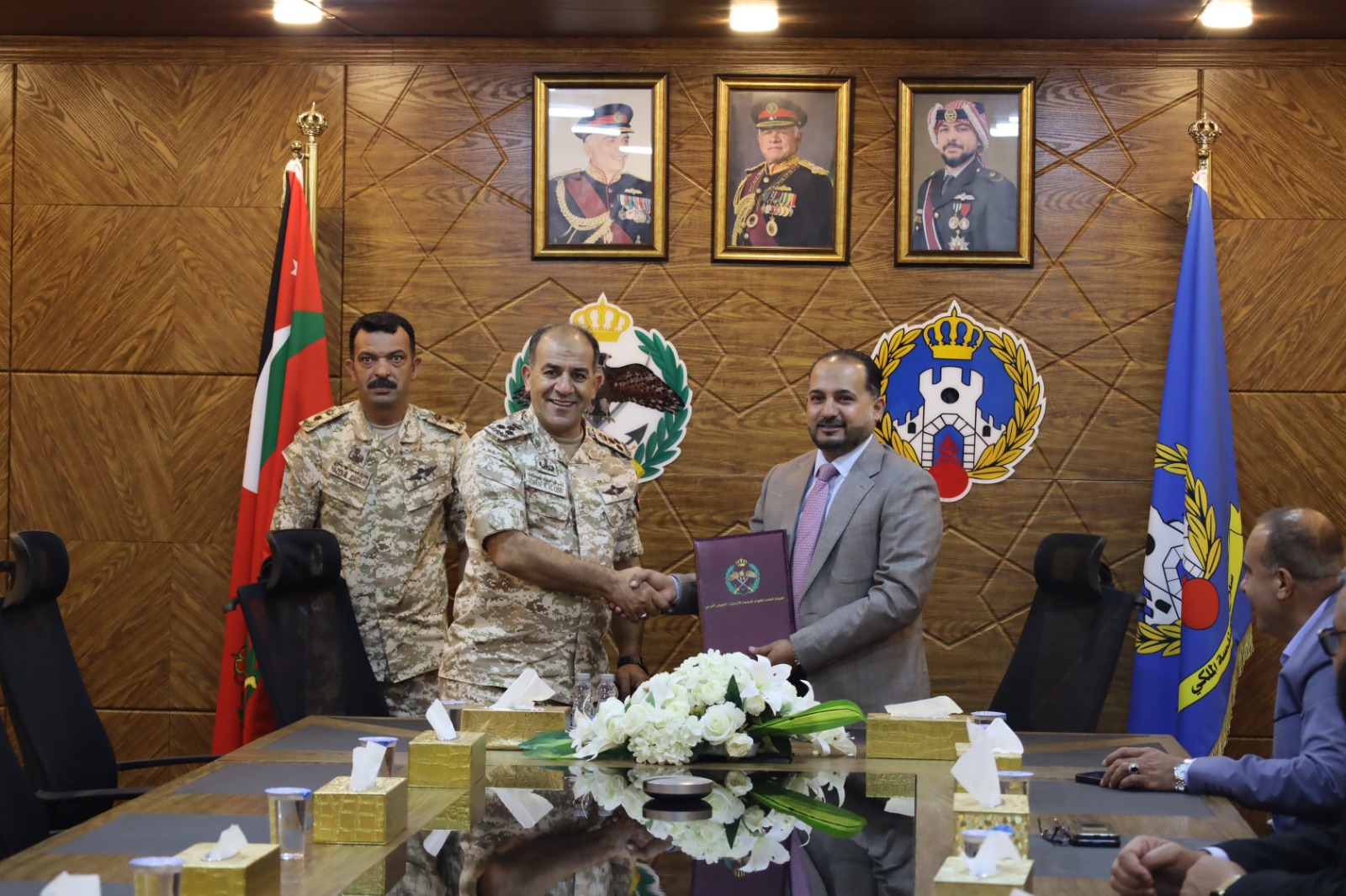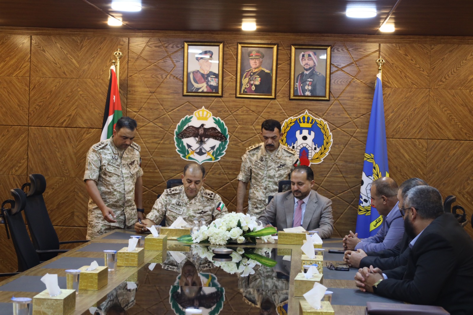 ضمن الجهود المتواصلة لوزارة المياه والري / سلطة وادي الاردن بتعظيم عوائد الحصاد المائي ورفع الطاقة التخزينية في مختلف سدود المملكة وقع أمين عام سلطة وادي الاردن المهندس هشام الحيصة ومدير سلاح الهندسة الملكي في القوات المسلحة الاردنية العميد الركن اشرف حماد العودات اليوم الاثنين ١٥ ايلول ٢٠٢٥ اتفاقيه تنظيف وازالة الرسوبيات والطمي من سد شعيب للمحافظة على السعة التخزينية للسد ضمن جهود القوات المسلحة الاردنية في اسناد الجهود الوطنية لمواجهة مختلف التحديات وتنفيذ مشاريع تنموية تعود بالفائدة على المواطنين .