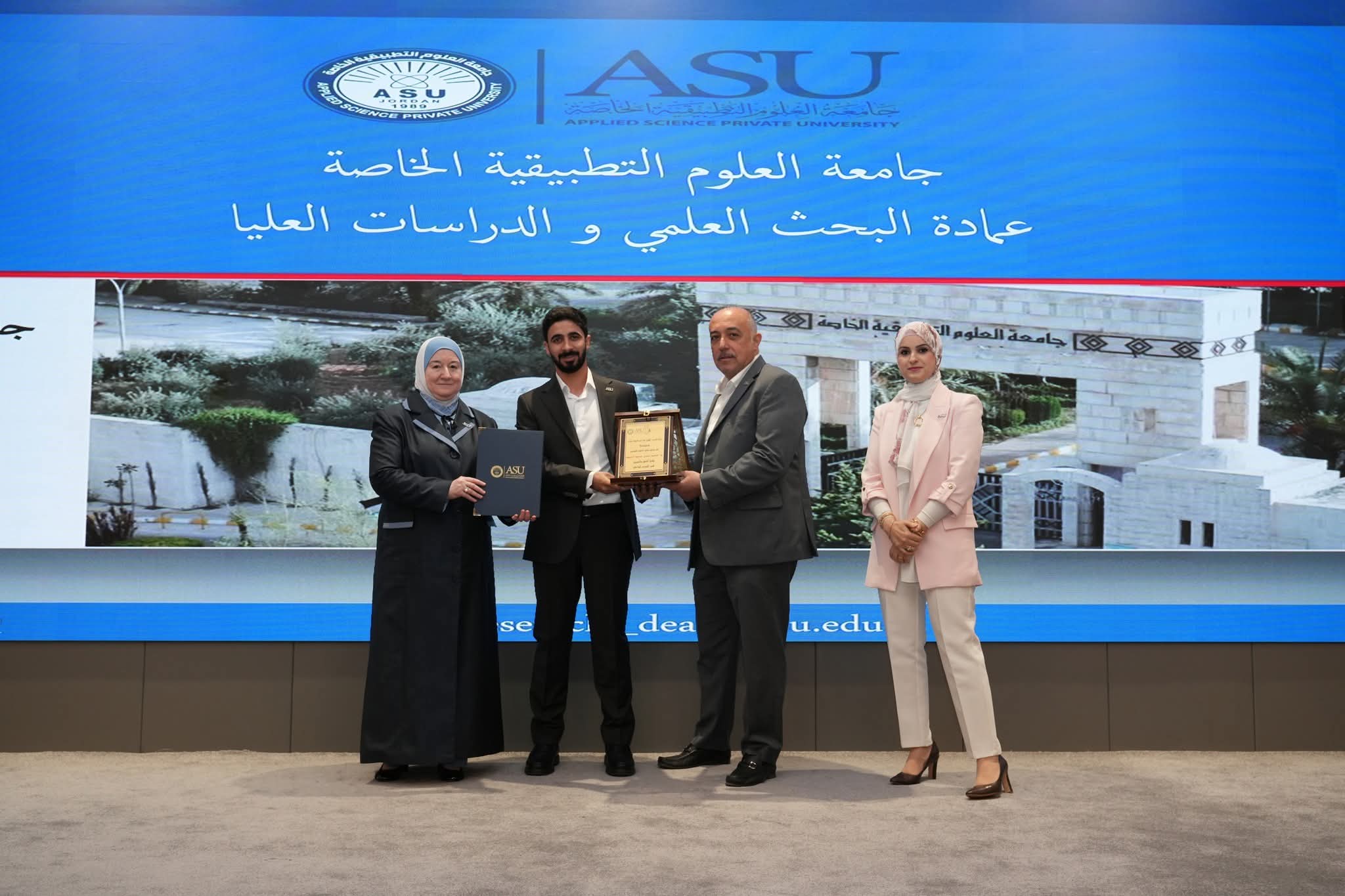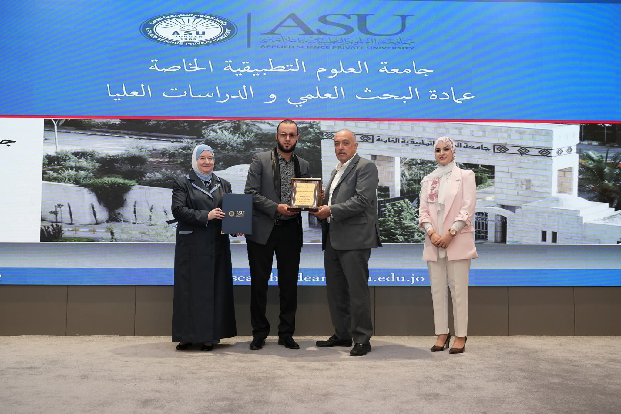 تتقدّم جامعة العلوم التطبيقية الخاصة بأحرّ التهاني والتبريكات إلى الفائزين بجوائز البحث العلمي على مستوى الجامعة والكليات للعام الأكاديمي 2024-2025، تقديرًا لجهودهم المتميزة وإنجازاتهم البحثية التي تُجسّد روح الإبداع والتميّز الأكاديمي في الجامعة، وتُعزّز مسيرتها في دعم البحث العلمي والابتكار.