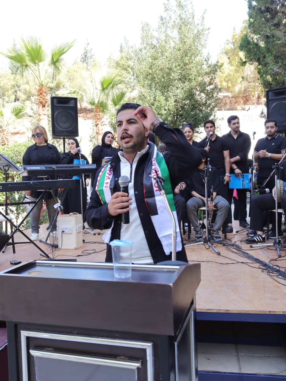 وتخلل الحفل فقرات موسيقية وغنائية قدّمها طلبة فرقة كورال الجامعة بإشراف مدربة النشاط الموسيقي رولا نصر، عكست المواهب الشابة والإبداع الفني الذي تتميز به الجامعة، حيث قدمت الفرقة مقطوعات موسيقية وأغانٍ وطنية وحماسية تفاعل معها الحضور بحماس وفرح كبير