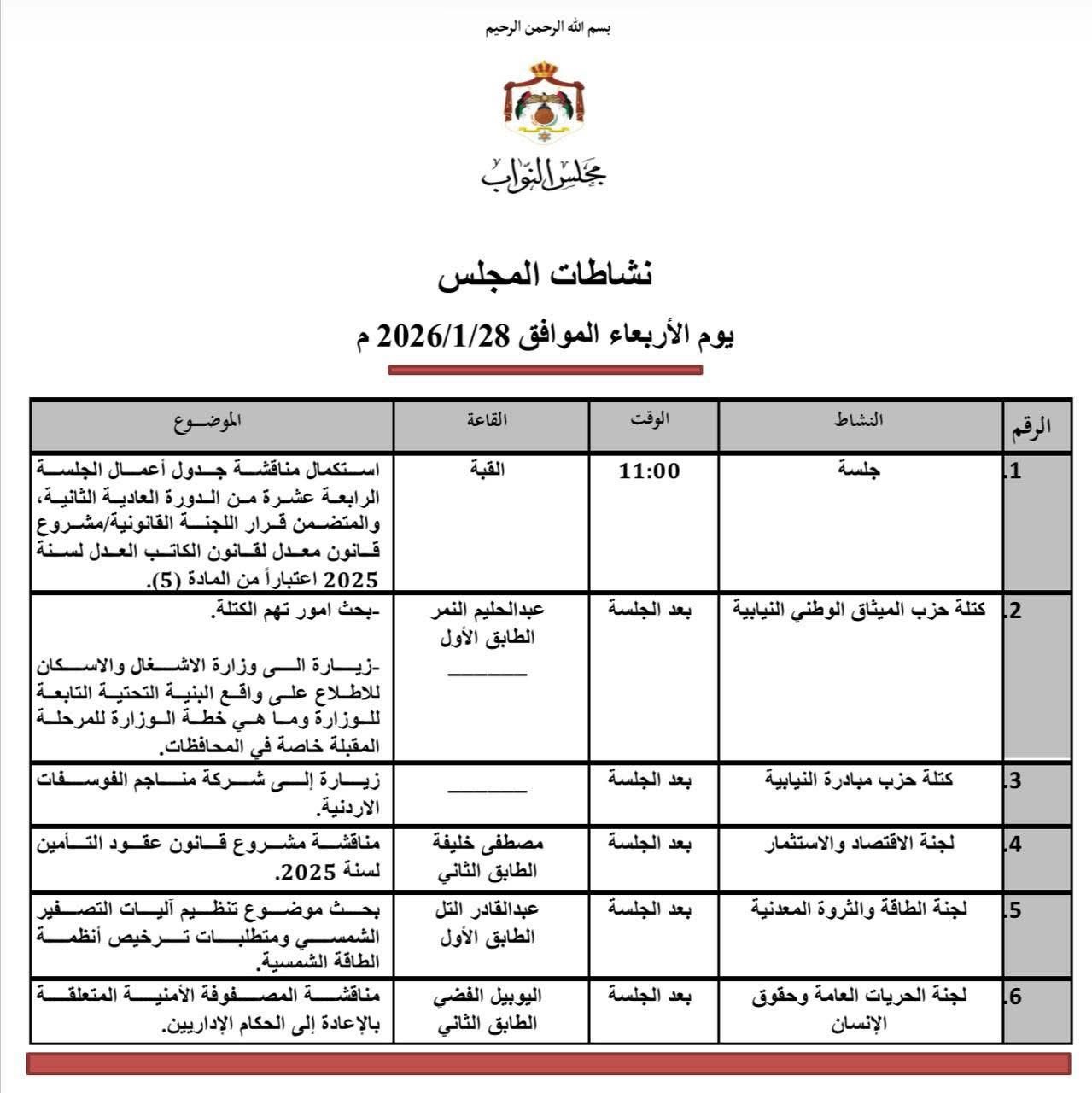 وبعد الجلسة، تواصل لجنة الاقتصاد والاستثمار مناقشة مشروع قانون عقود التأمين لسنة 2025.