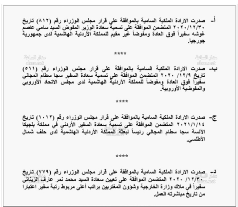 ارادات ملكية بـ غوشة والمجالي والزيناتي