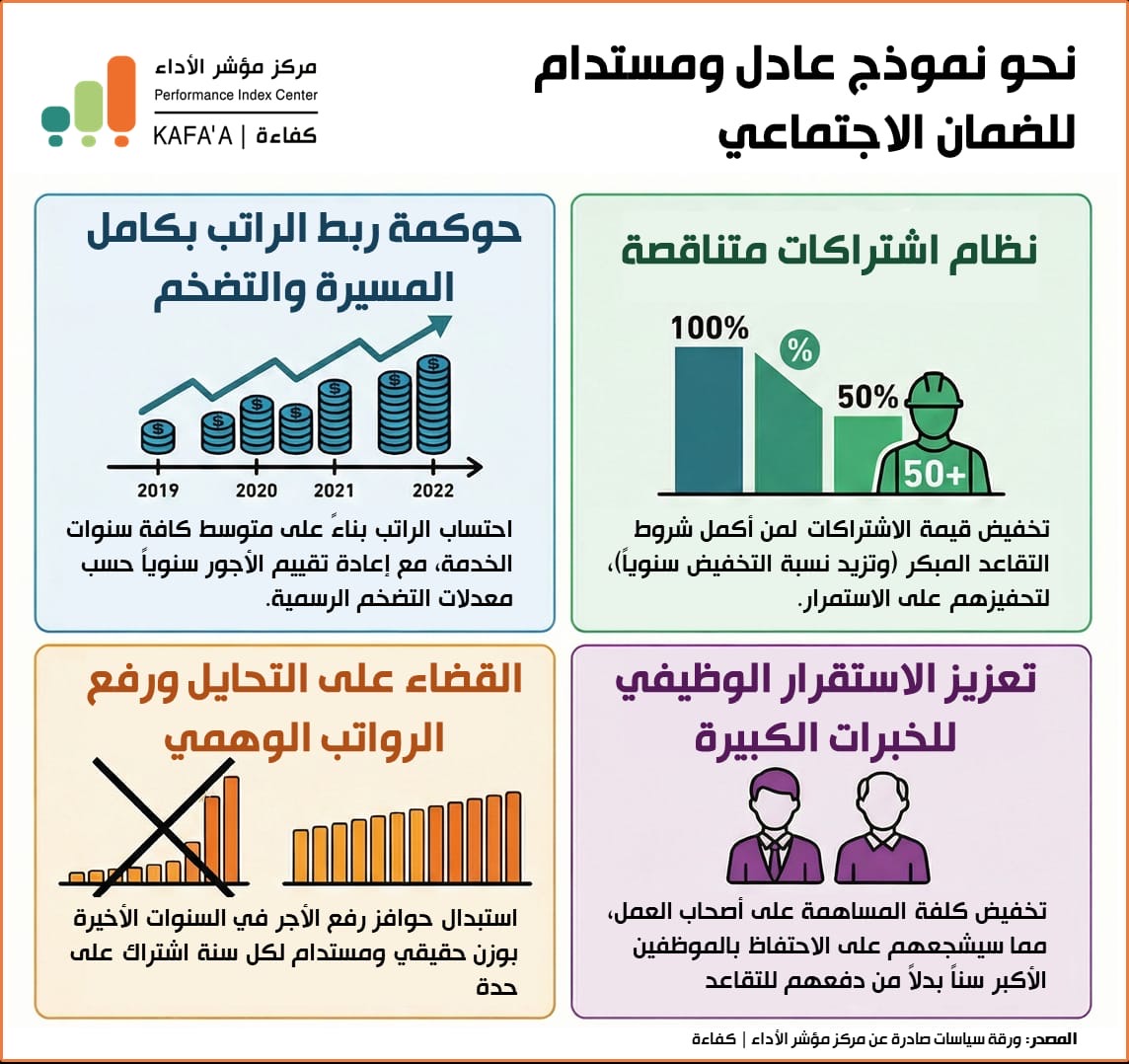*الضمان الاجتماعي: نحو نموذج عادل ومستدام – ورقة سياسات جديدة لمركز مؤشر الأداء | كفاءة*