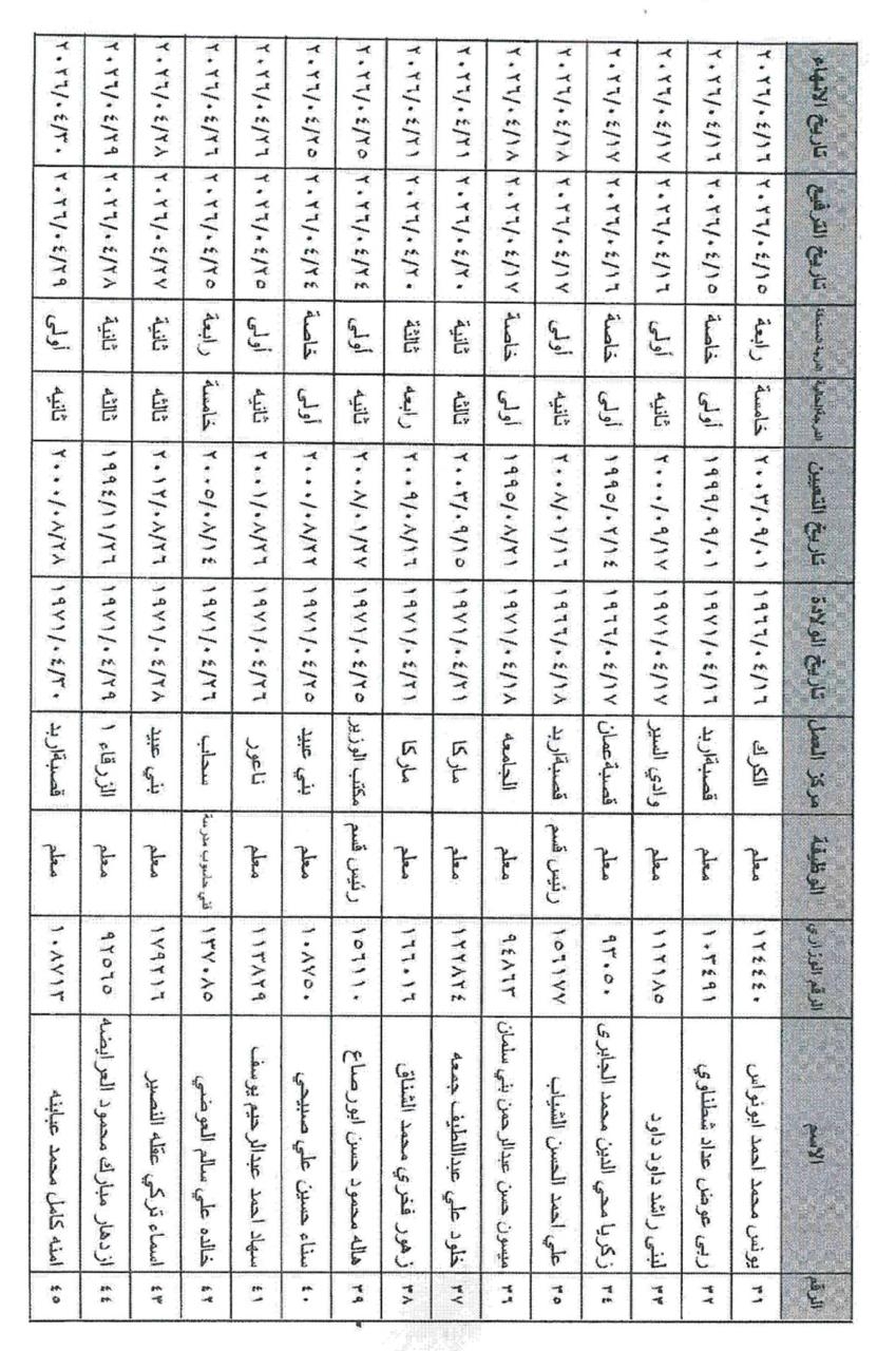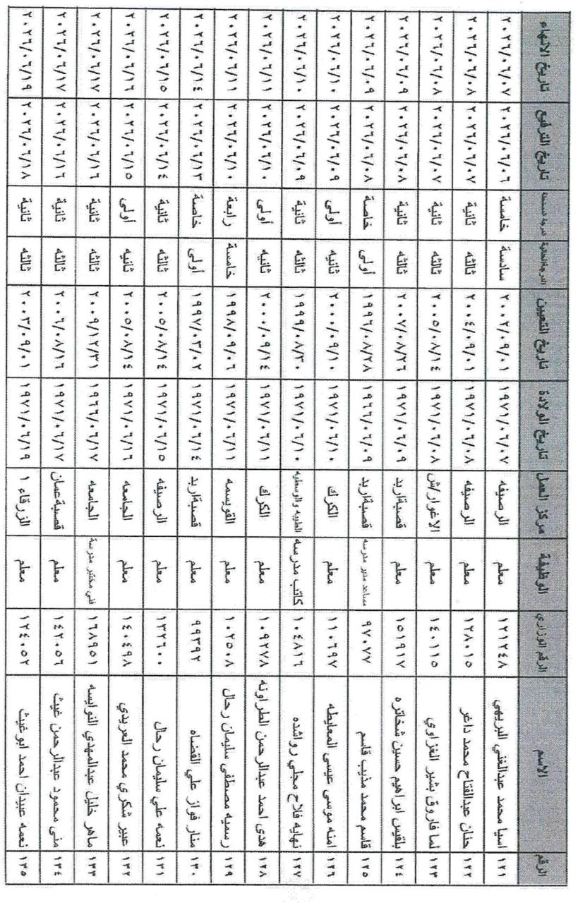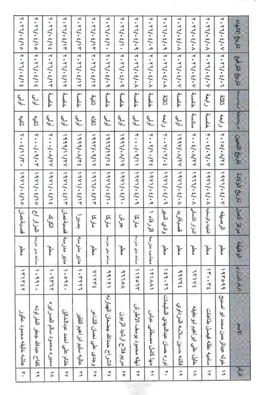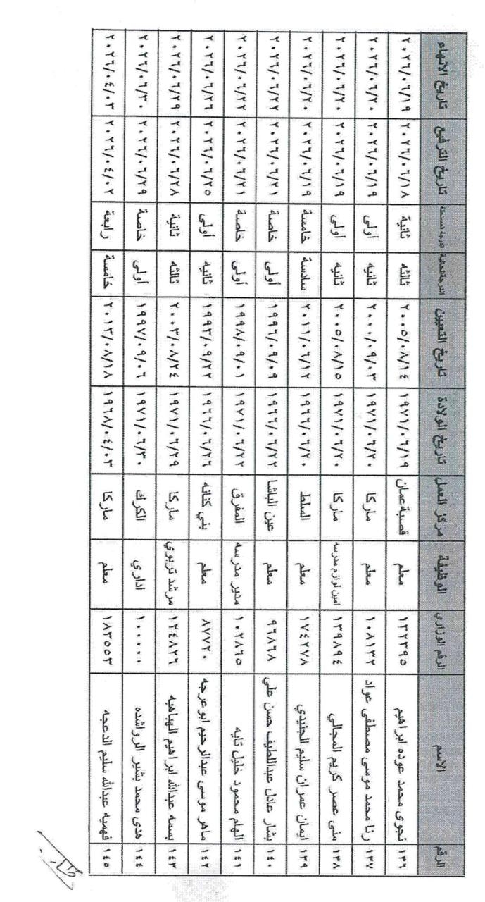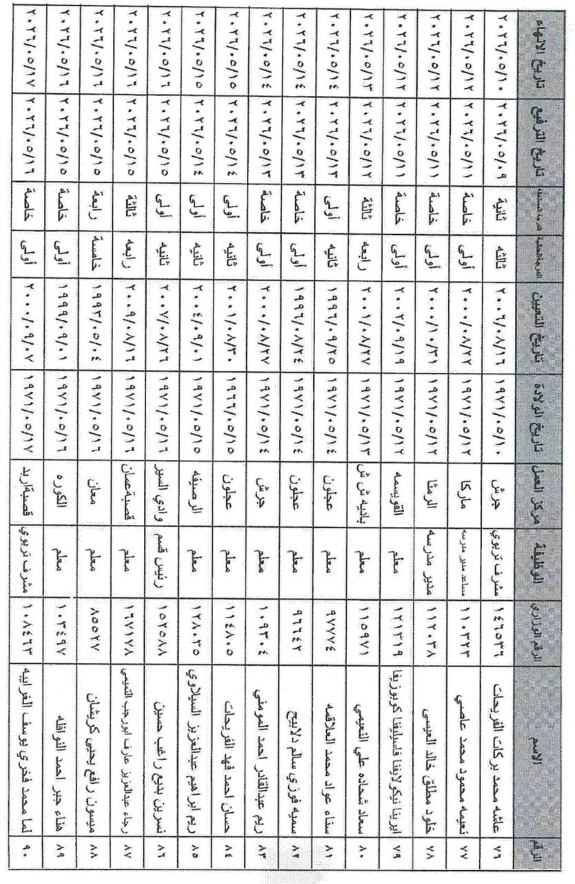 وشمل القرار ترفيع الموظفين من مختلف الفئات الوظيفية (الأولى، الثانية، والثالثة) في مركز الوزارة والميدان التربوي، ممن استكملوا شروط الترفيع والخدمة المقررة قبيل إحالتهم على التقاعد اعتباراً من تاريخه.