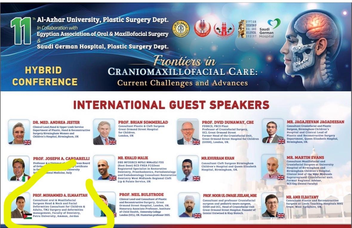 الدكتور محمد علي المعايطة يتصدّر العالم من القاهرة: إنجاز أردني جديد بالريادة و البحث العملي و العلمي في الجراحات التجميلية و الترميمية و جراحة الفم و الوجه و العنق