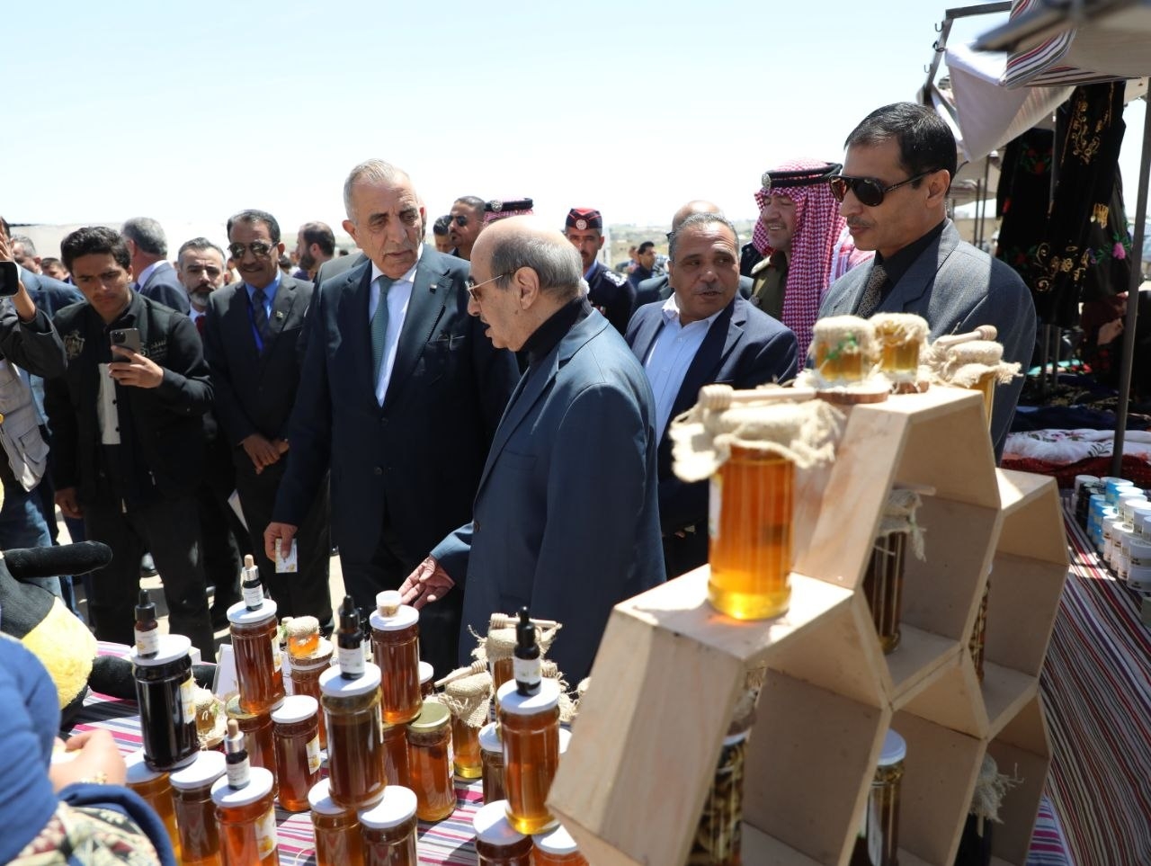 وكان وزير الثقافة افتتح في مستهل الحفل معارض: الكتب، والصور الفوتوغرافية التي أبرزت محطات وطنية مشرقةوقطاعات التنمية في اللواء، والمنتجات الغذائية التراثية، كما عرضت مادة فلمية عن اللواء وقراه ومناطقه وأبرز المواقع التاريخية والاثرية ومنها قصور الموقر والخرانة وعمره والبركة، وما شهده من مشروعات تنموية اقتصادية وتطور.