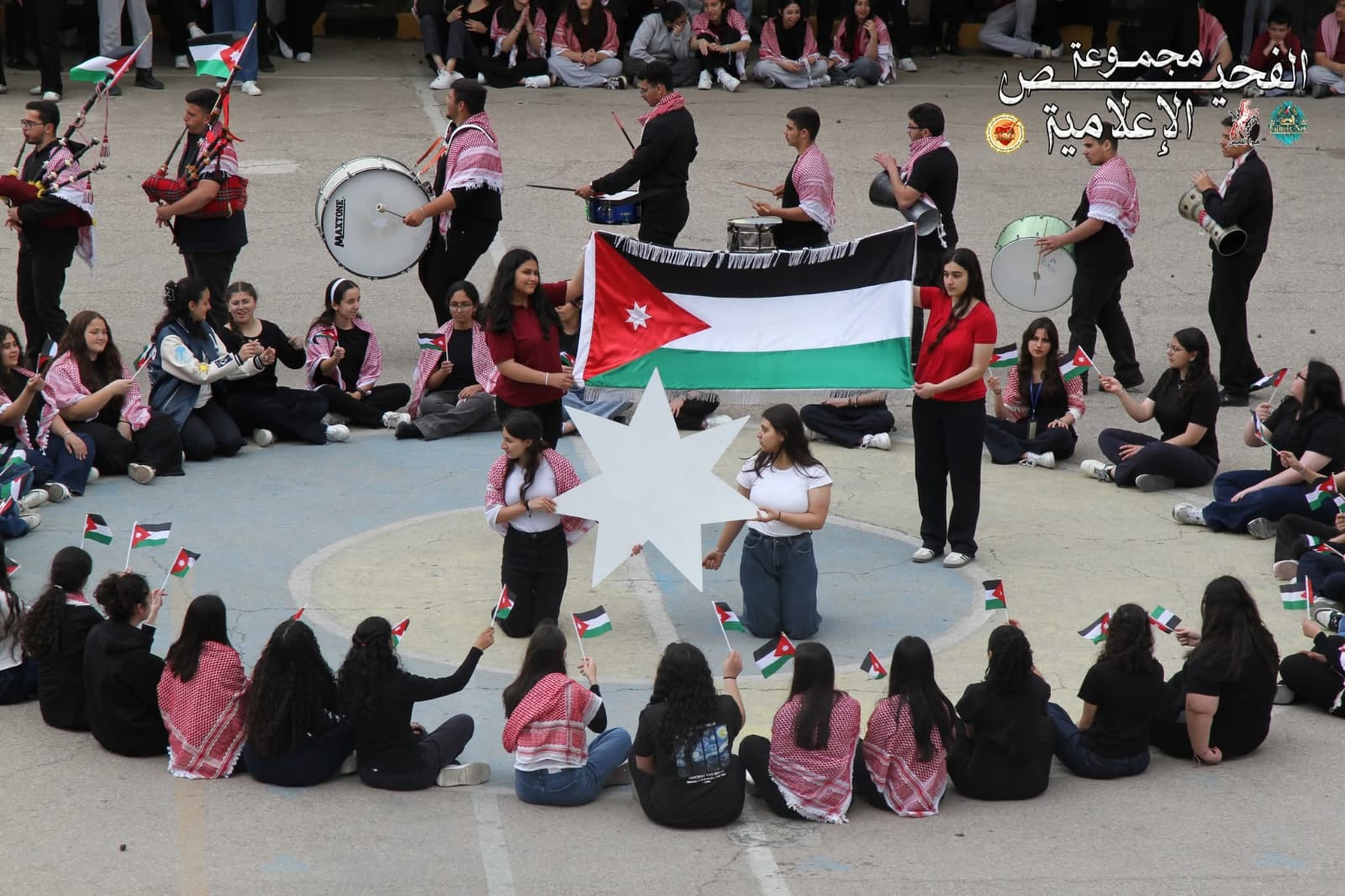 كما شهد الحفل الذي كان تحت إشراف وتدريب منسق الأنشطة المدرسية الاستاذ رائد حداد. وبالتعاون مع مجموعة من المعلمات والطلبة تقديم لوحات فنية وتشكيلات مميزة بمرافقة الفرقة الموسيقية، عبّرت عن حب الطلبة لوطنهم واعتزازهم برايته، في مشهد جسّد روح الفخر والشموخ.