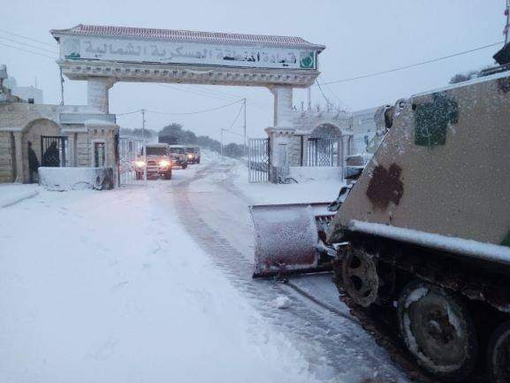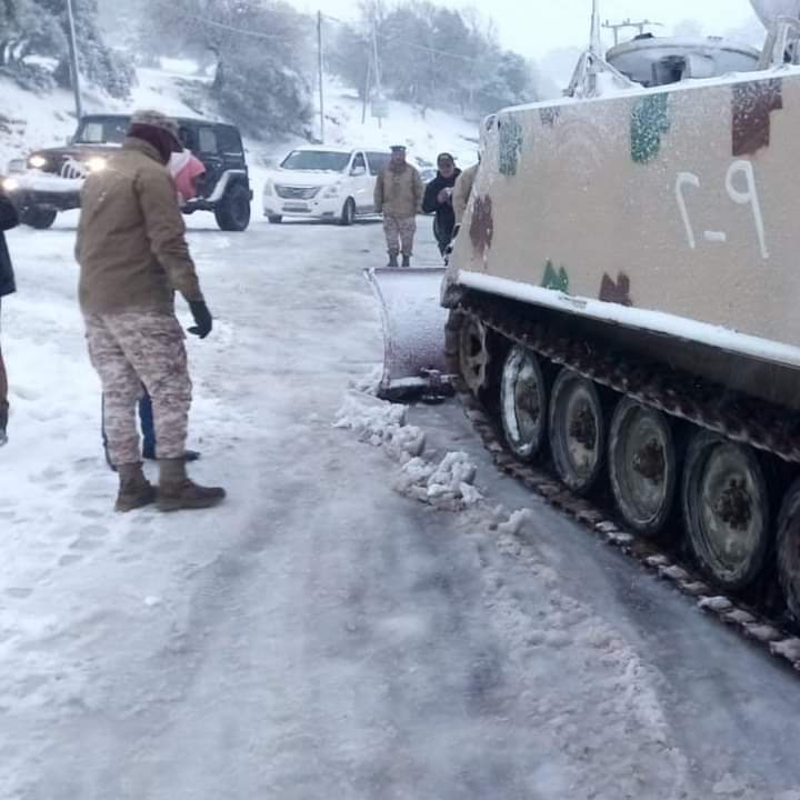 وقامت المنطقة العسكرية الشمالية، بفتح الطرق المغلقة في محافظات الشمال بسبب تراكم الثلوج، وتقديم المساعدة للمواطنين الذين حوصروا داخل مركباتهم، وتأمينهم بالاحتياجات الضرورية ونقلهم إلى منازلهم، إضافةً إلى التعامل مع العديد من انجرافات الأتربة جراء هطول الأمطار من خلال الآليات الهندسية.