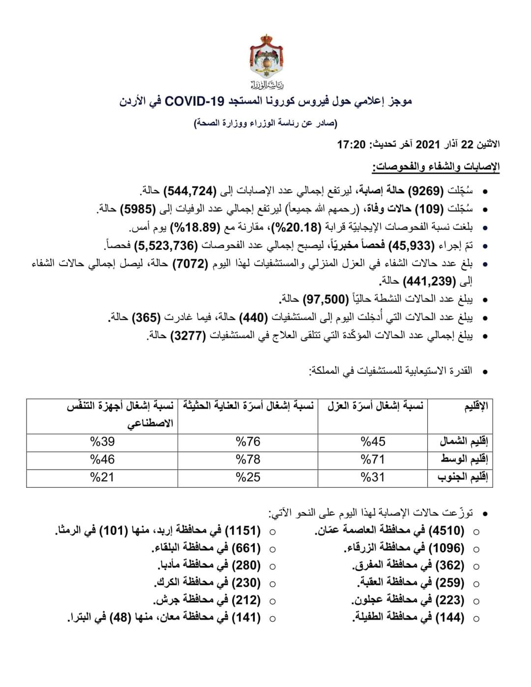 (صادر عن رئاسة الوزراء ووزارة الصحة)