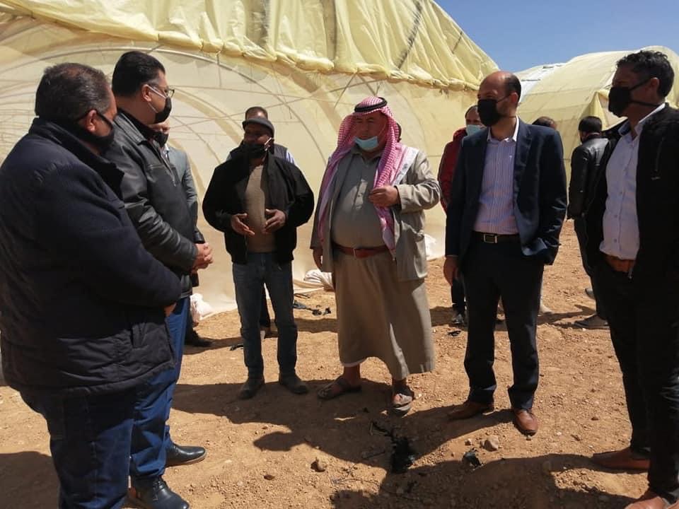 وزير الزراعة يتفقد المزارع المتضرره من الرياح في معان