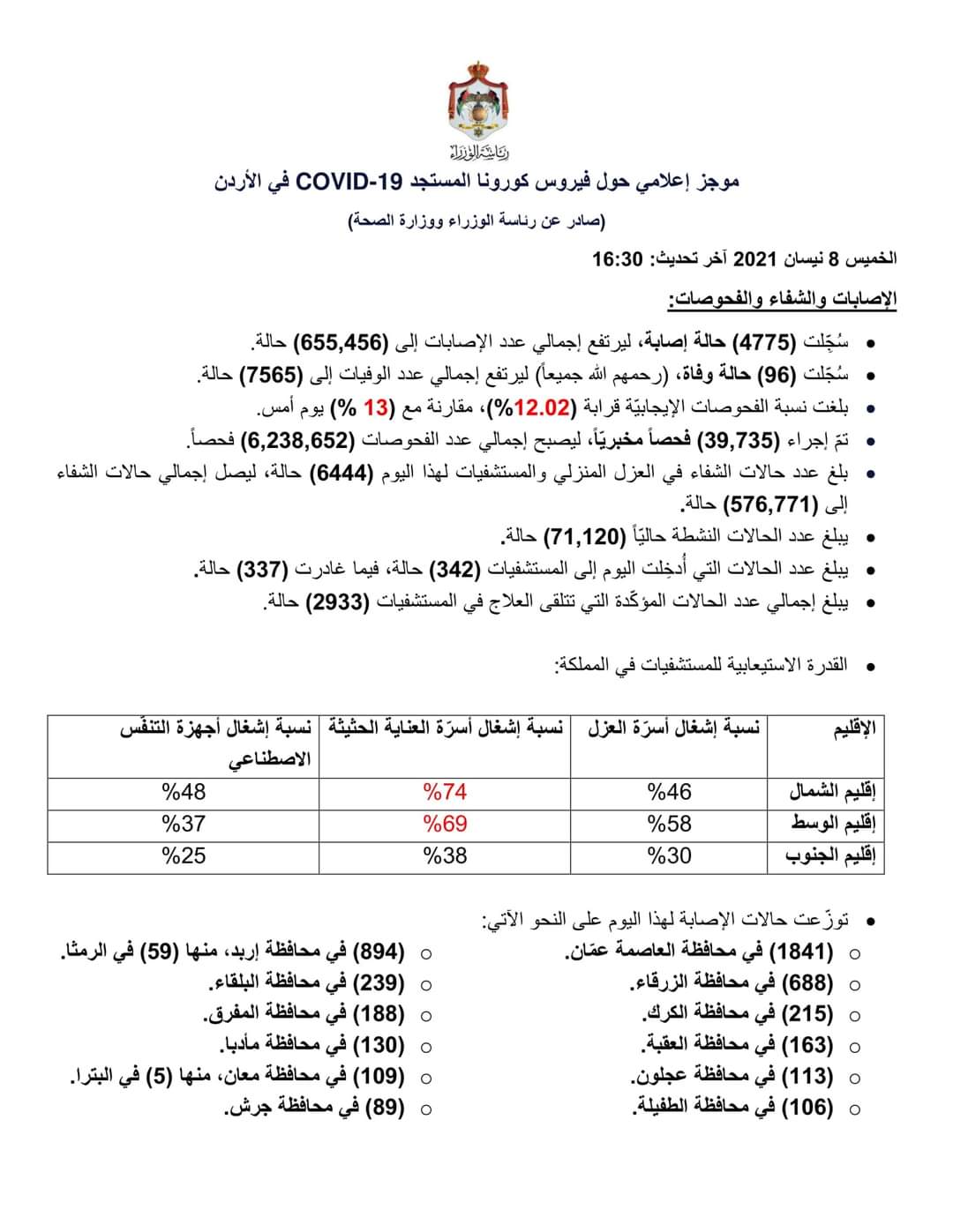 موجز إعلامي حول فيروس كورونا المستجد COVID-19 في الأردن