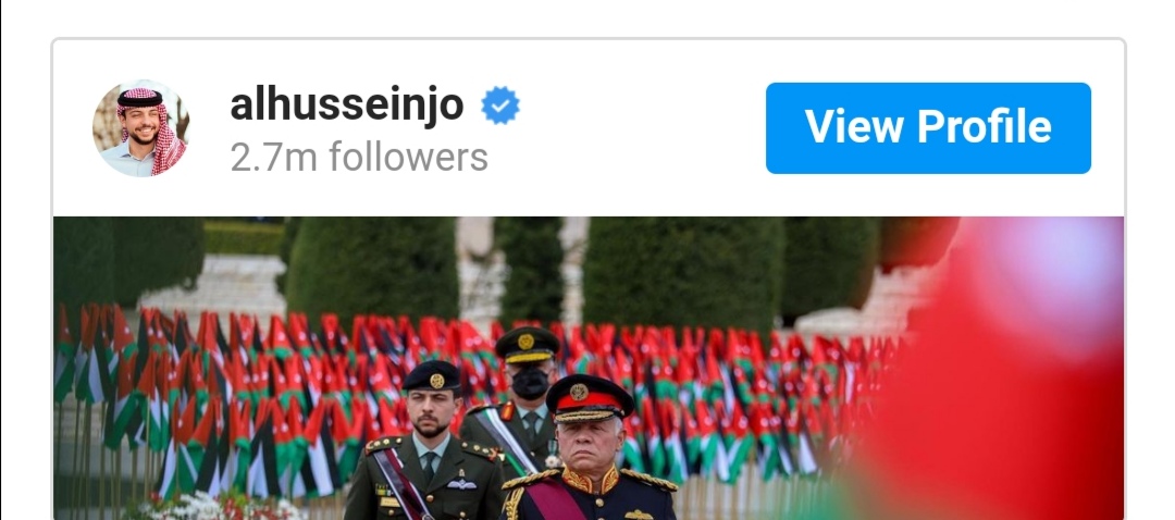 نشر، سمو الأمير الحسين بن عبدالله الثاني، ولي العهد، الأحد، عبر حسابه الخاص على انستغرام، صورة لجلالة الملك عبدالله الثاني بن الحسين.