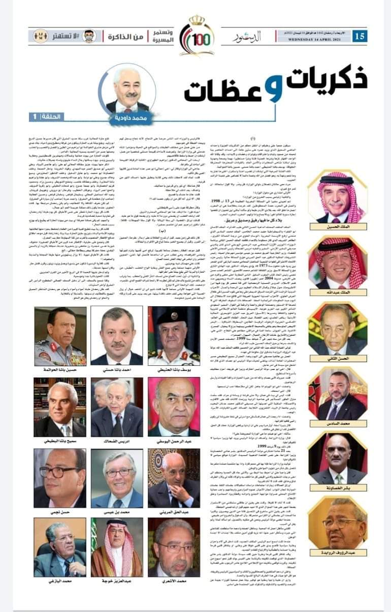 (أ) سيكون صعبا عليّ وعليكم ان انتقل معكم من الذكريات العزيزة واحداث الماضي السحيق الذي يزيد عمره على ستين عاما، الى احداث الحاضر بما تحمله من صمود وثبات واختراقات وتوترات وخضّات و"لايذات"، وقد قانا الله الواحد القهّار نارَها و شرّها، فجنبنا فتنة و شرّا مستطيرا، بهمة وصحة ومهنية ونبل ابنائنا نشامى المخابرات والأمن العام. بالقيادات المحترمة المحترفة الخلوقة: يوسف باشا الحنيطي. احمد باشا حسني. حسين باشا الحواتمة.