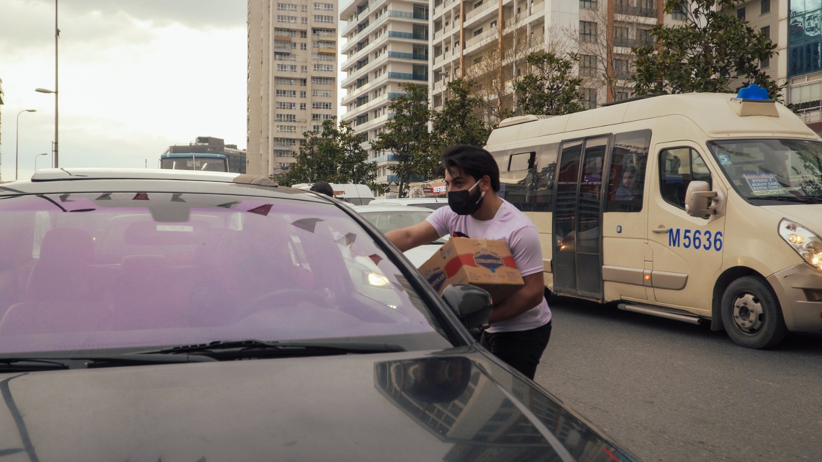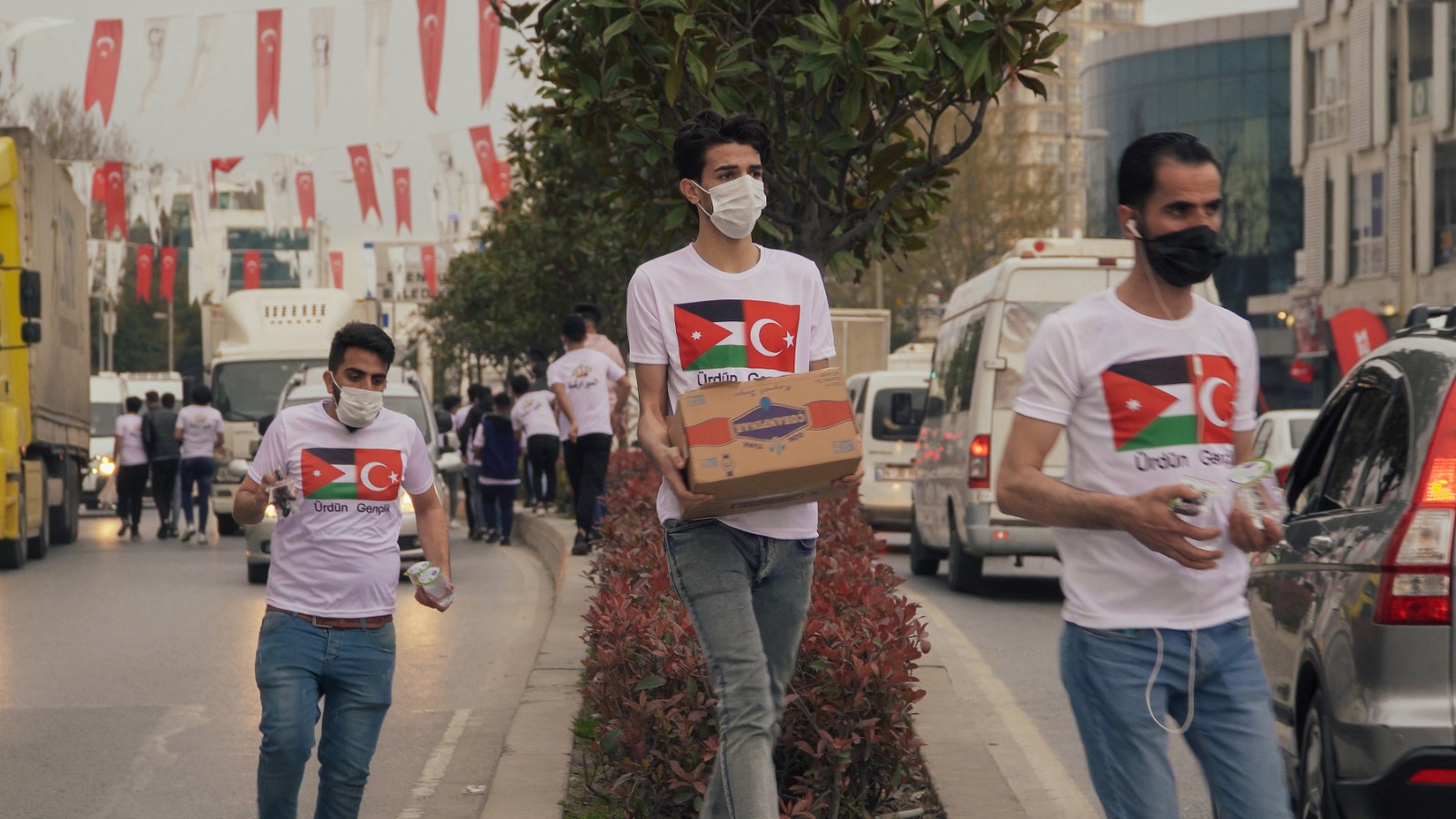 شباب من محافظة الكرك "البرارشة" جنوب الاردن متطوعون، يتناثرون على الطرقات في شوارع اسطنبول وتحديدا عند الاشارات الضوئية، يؤجلون إفطارهم إلى ما بعد اتمام الواجب الذي أخذوا على عاتقهم القيام به ، وهو توزيع ماء وتمر في أكياس مغلفة على المارة في الشارع والسيارات.