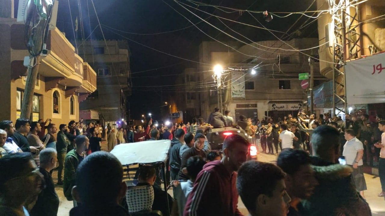 شاهد صور... صور فرحة المواطنين في بلدة خزاعة شرق خانيونس بنصر المقاومة