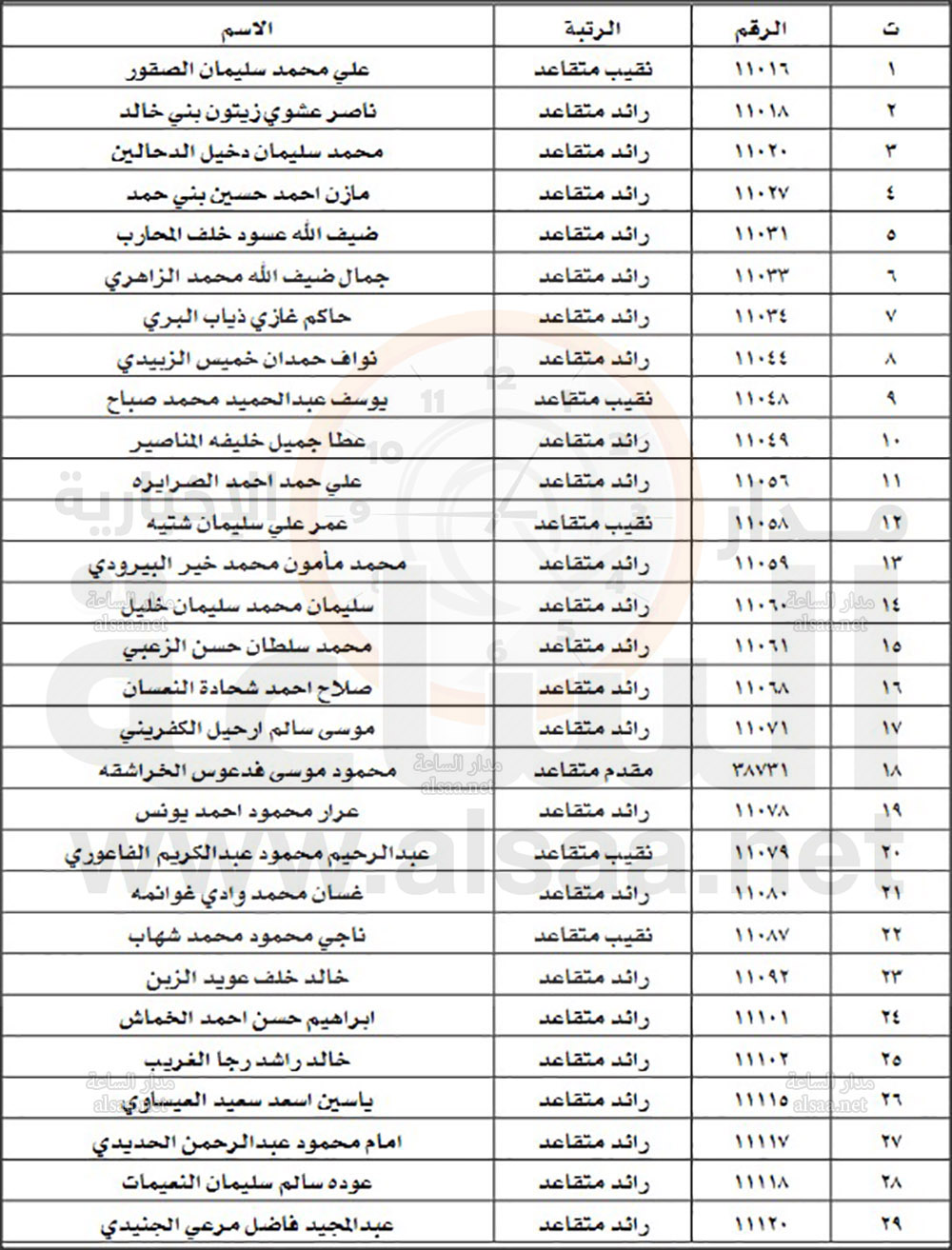 دعت مديرية الامن العام الضباط التالية اسماؤهم لمراجعة ادارة الابنية اعتبارا من يوم غد الثلاثاء واحضار الوثائق المبينة بادناه لاستكمال الاجراءات تمهيدا لصرف قروض الاسكان الخاصة بهم عن شهر حزيران 2021.