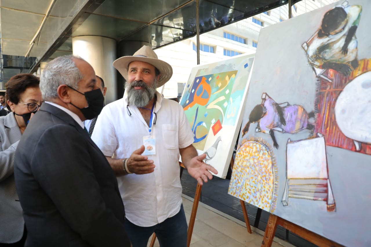 افتتح وزير الثقافة نائب رئيس اللجنة العليا لاحتفالية مئوية الدولة علي العايد اليوم الاثنين 28/6/2021 معرض مادبا الثالث للفن التشكيلي الذي تنظمه مديرية ثقافة محافظة مادبا بالتعاون مع الجامعة الالمانية ضمن الخطة الوطنية لاحتفالية مئوية الدولة.