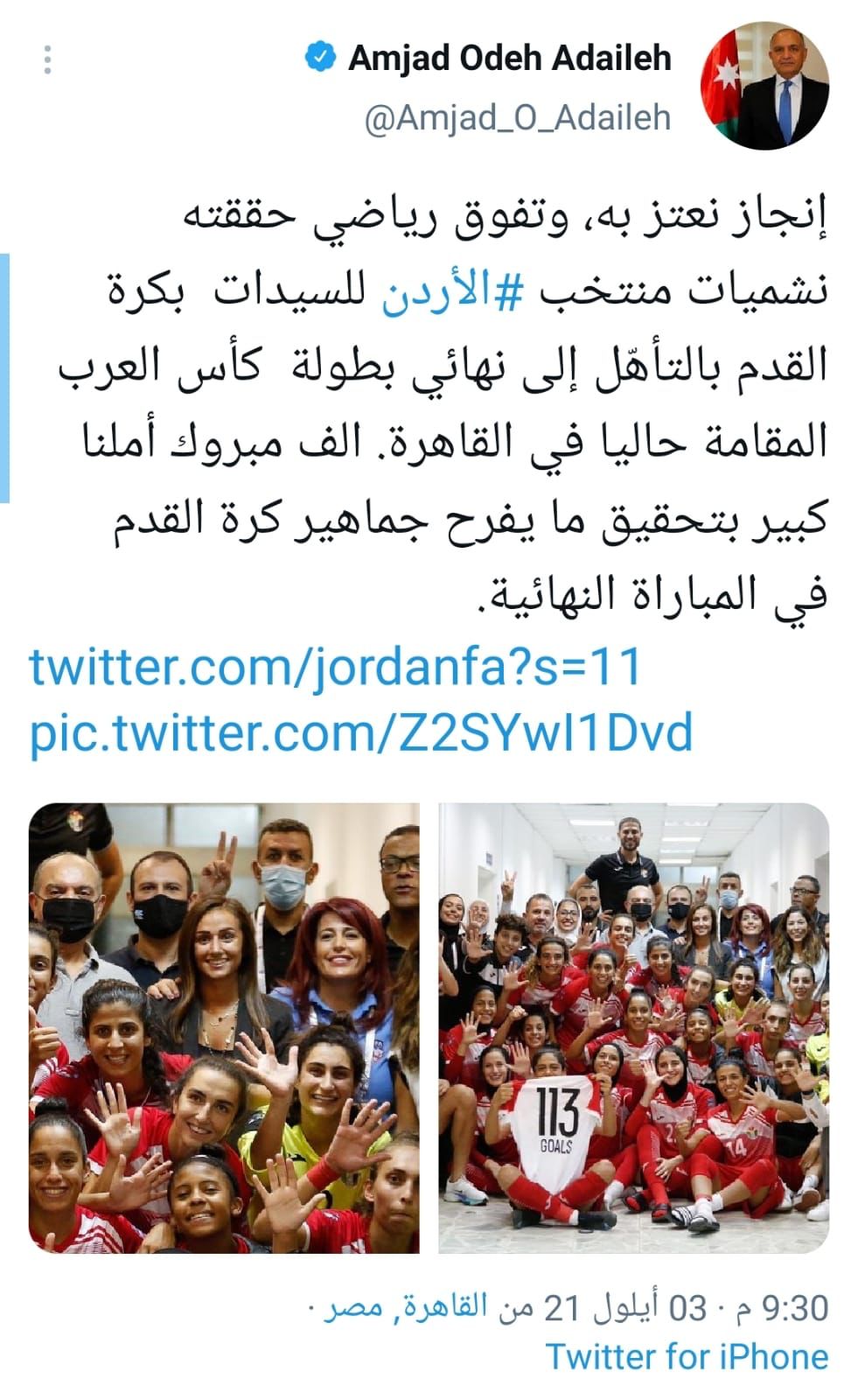 السفير الاردني في القاهرة امجد العضايله يهنئ النشميات"صور"