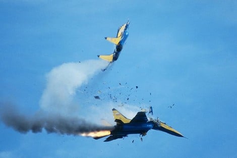 فيديو لاصطدام طائرتين حربيتين خلال عرض جوي بكولومبيا.. الحادث صدم المشاهدين وأودى بحياة طيار