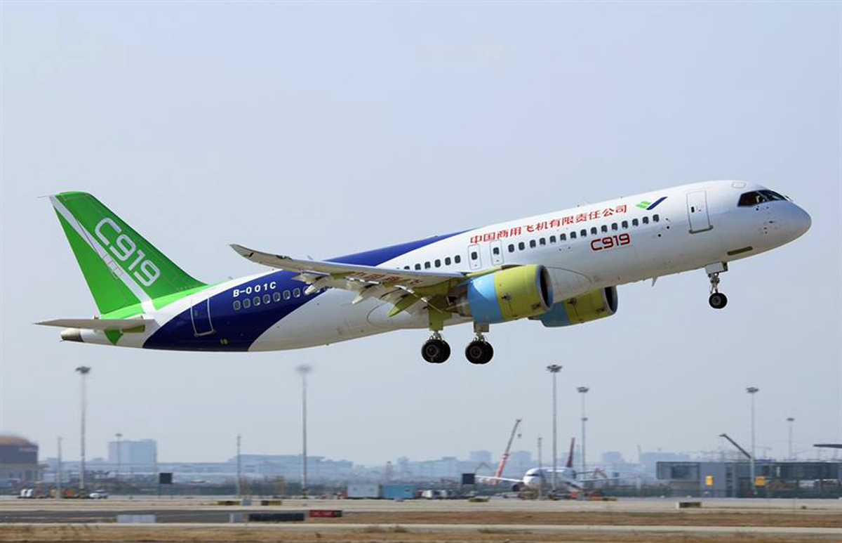 إقلاع أول طائرة ركاب صينية الصنع في رحلتها التجارية الأولى