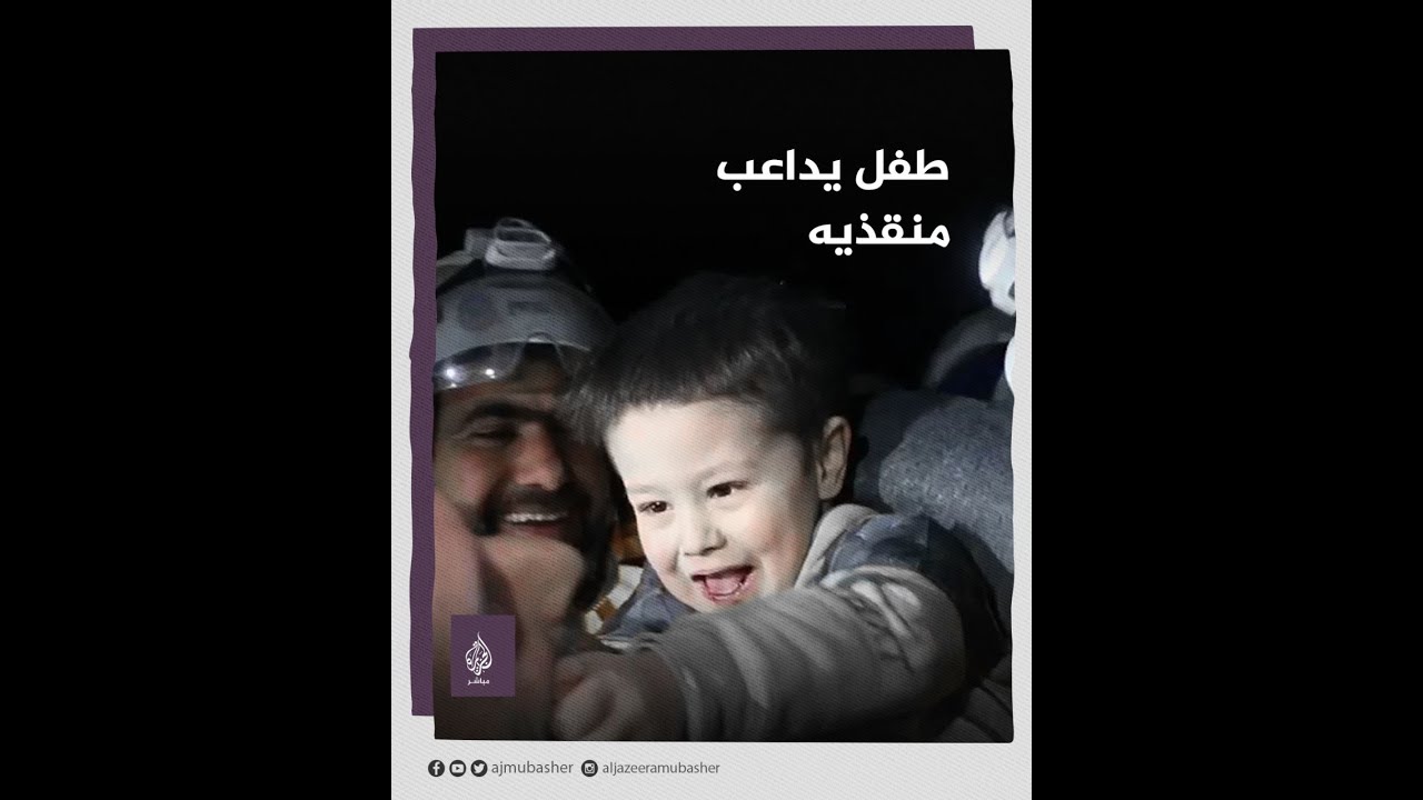 بدأ بمداعبة رجال الإنقاذ.. فرحة طفل سوري بعد إخراجه من تحت أنقاض منزله المدمر (فيديو)
