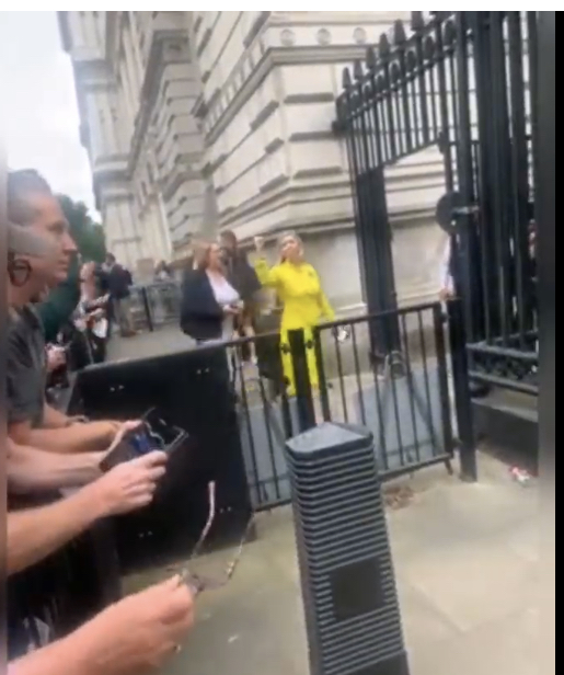وزيرة التعليم البريطانية الجديدة تصدم المتظاهرين بحركة غير أخلاقية باصبعها امامهم