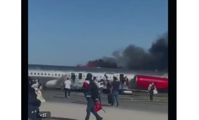 إرتطام طائرة تقل 130 شخصا بمدرج مطار ميامي الدولي بأمريكا وإحتراقها "فيديوهات وصور"