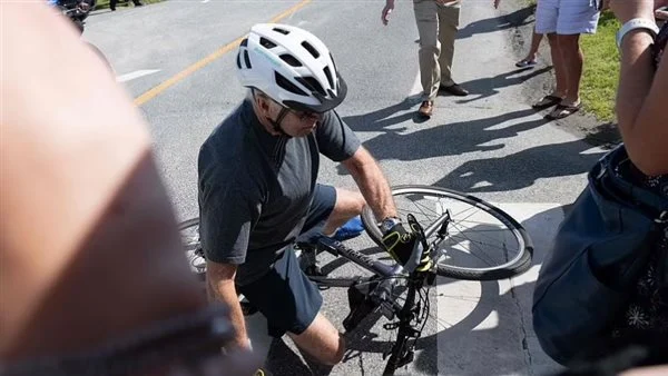 بالفيديو.. جو بايدن يسقط من على دراجته عند رؤية الصحفيين