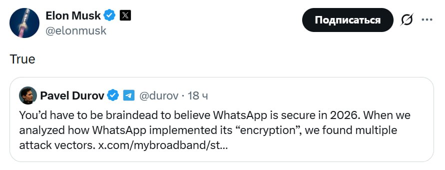 إيلون ماسك يتفق مع بافيل دوروف بشأن عدم أمان تطبيق واتساب