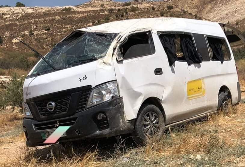 15 إصابة إثر تدهور حافلة ركاب على طريق الشونة الشمالية